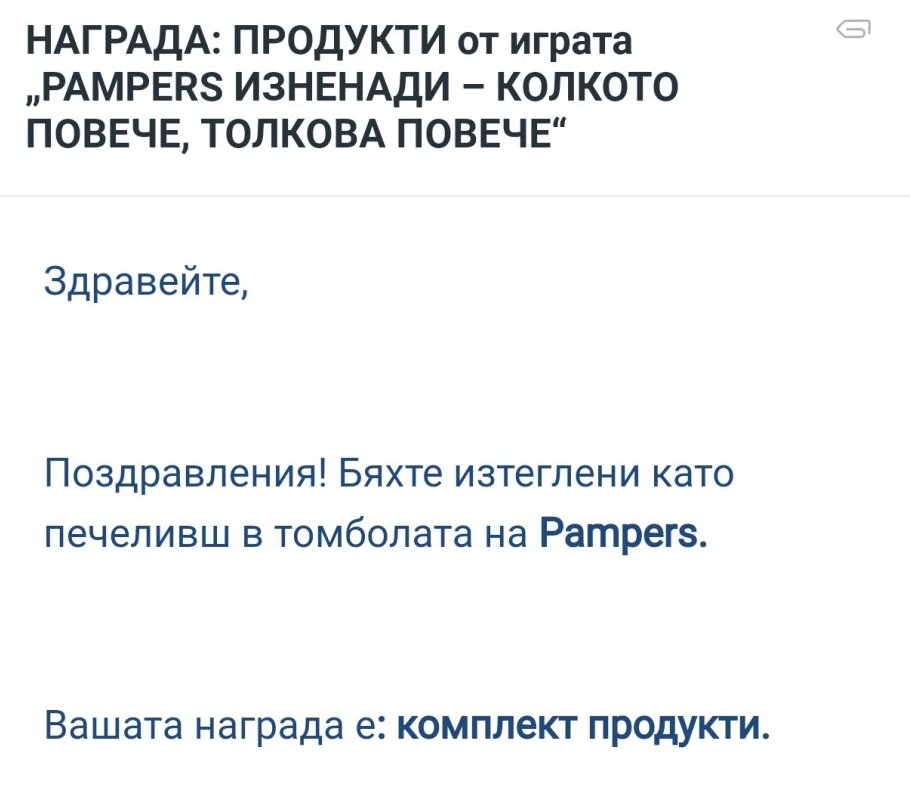 Печеля от Кауфланд и Памперс. Много се зарадвах.