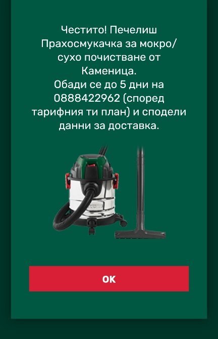 Честито! Вие сте победител в промоцията "Купи продукти Coca-Cola, Fanta или Sprite в Kaufland магазини за минимум 5 лв. в една касова бележка и можеш да участваш за награда“