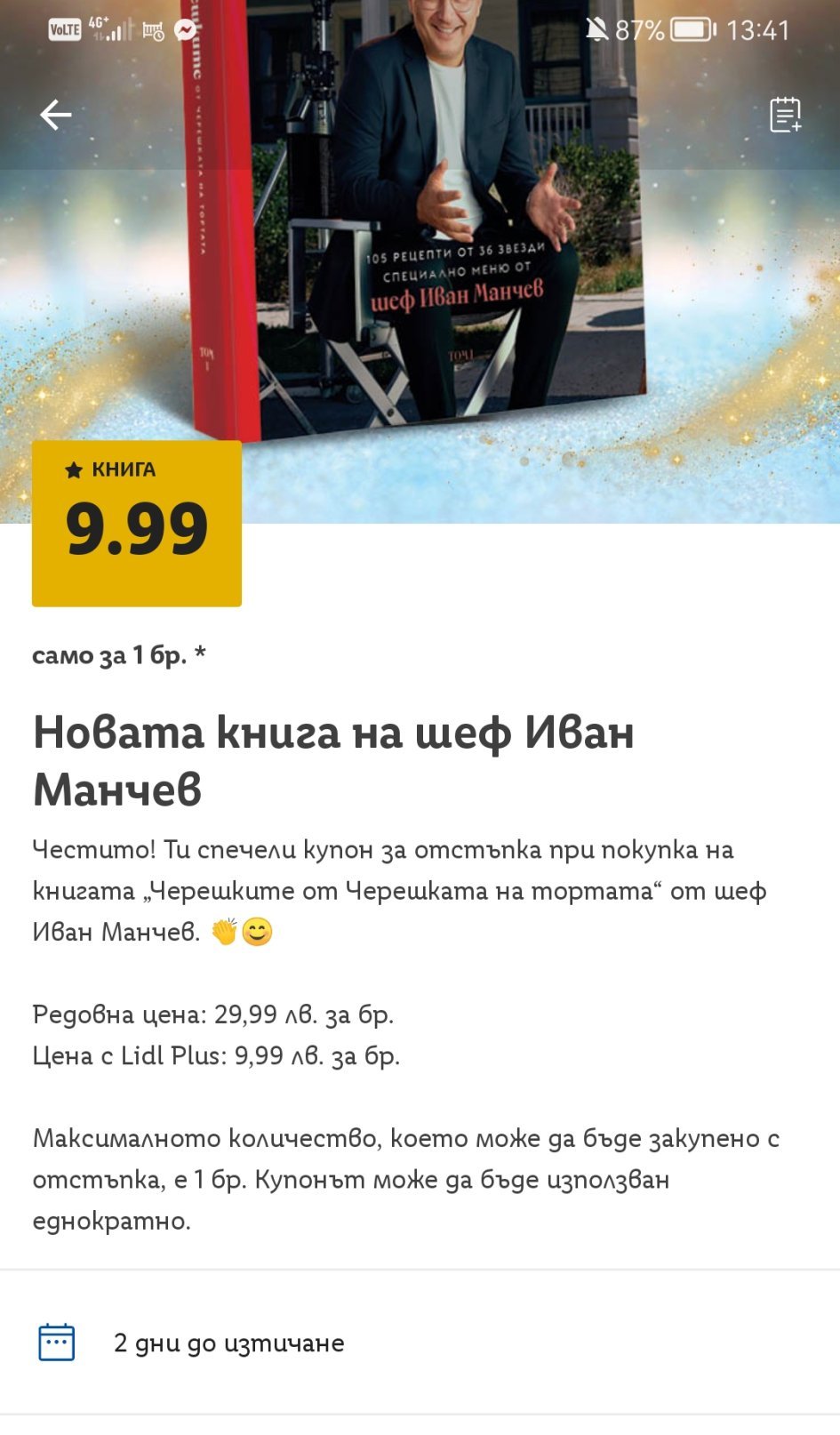 Имам активиран купон за книгата на Манчев. Аз не я искам. Свободен е!