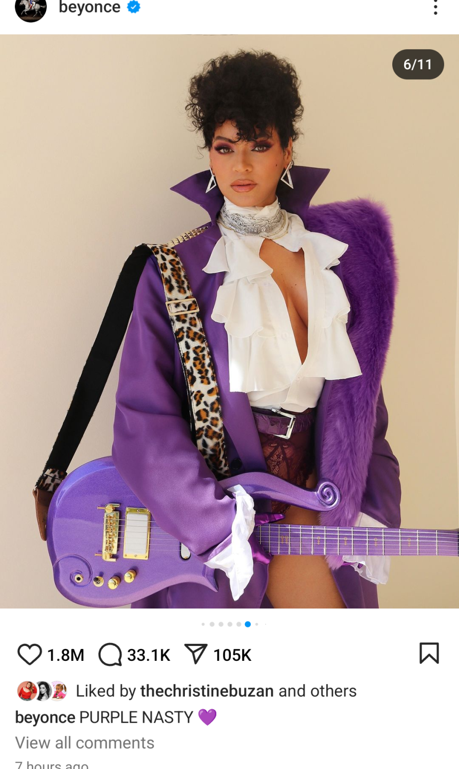 На втората снимка Бионсе поразително е като смес 50:50 от Принс и Аполония. Интересно се е получило, но сигурно е играл и AI в обработката на снимката.