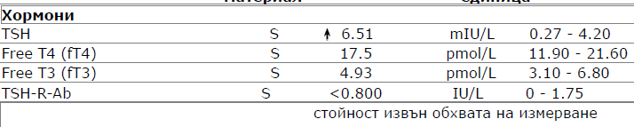Сега месец след прием на половин метизол на ден, без допълнителен хормон, днес резултатите ми излязоха следните: