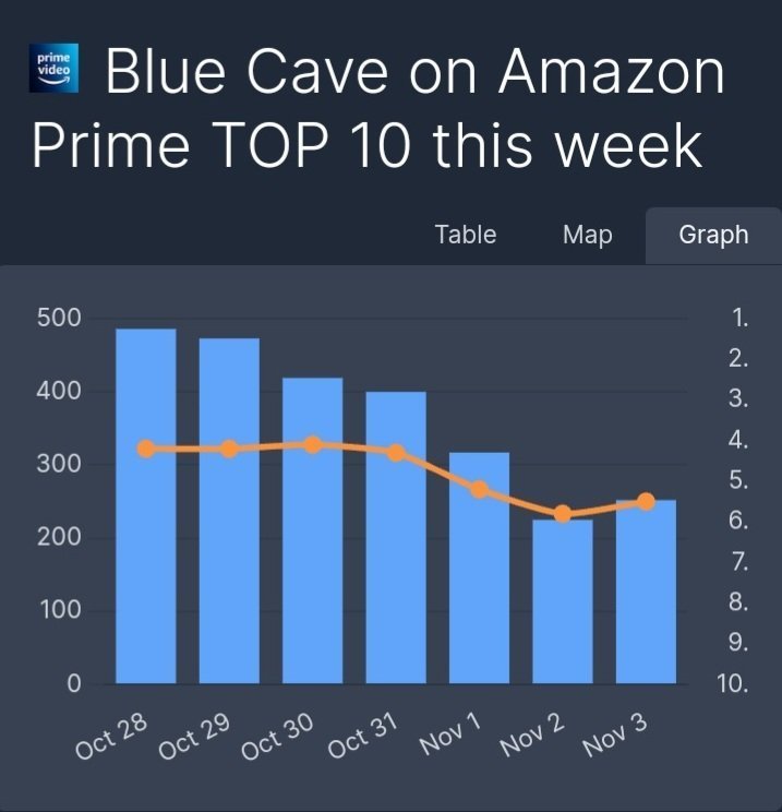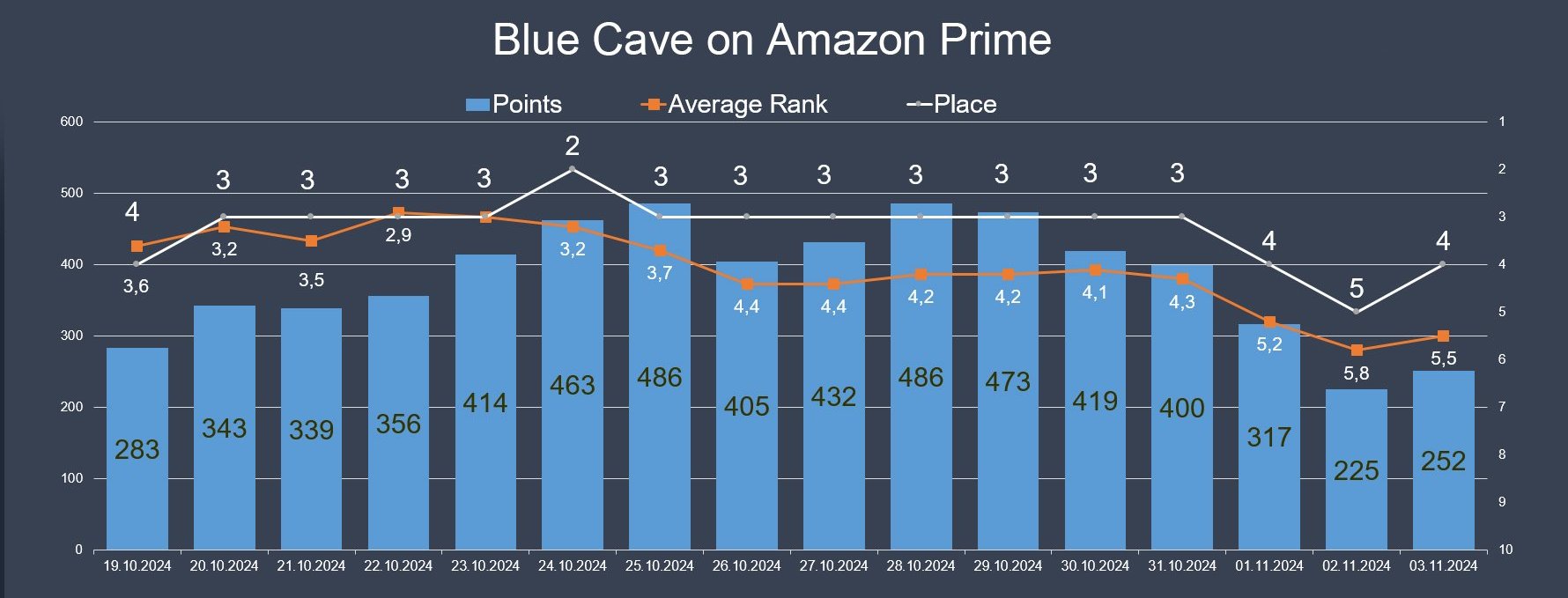"Синята пещера стана 4-ият най-гледан филм в света на Amazon Prime, според данни от 03.11.2024 г.