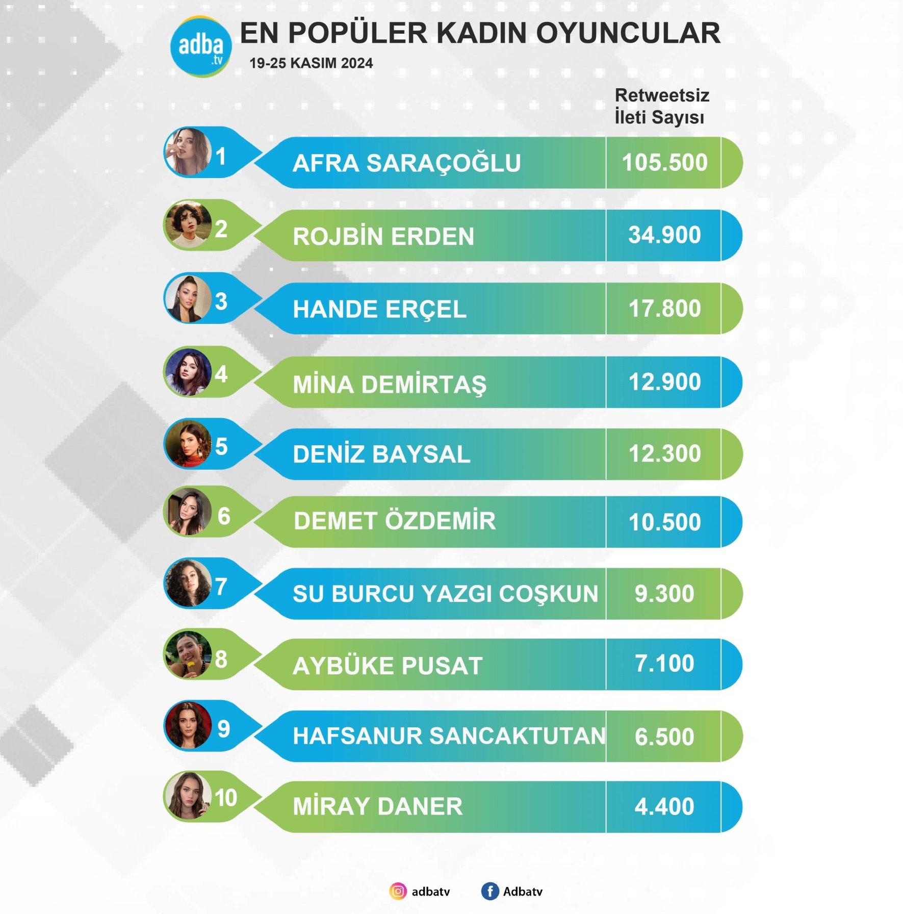 Адба обяви кои са най-популярните актриси в социалните мрежи! (19-25 ноември). Тази седмица Ханде е на 3-то място Simple Smile