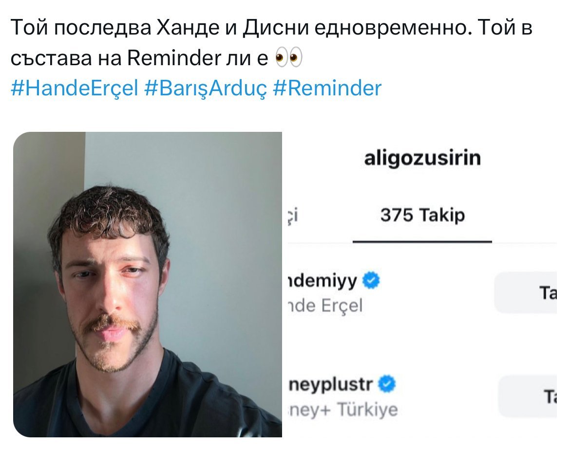 Özgür Önurme, режисьорът на поредицата Reminder, последва Hande Erçel и Barış Arduç в Instagram.