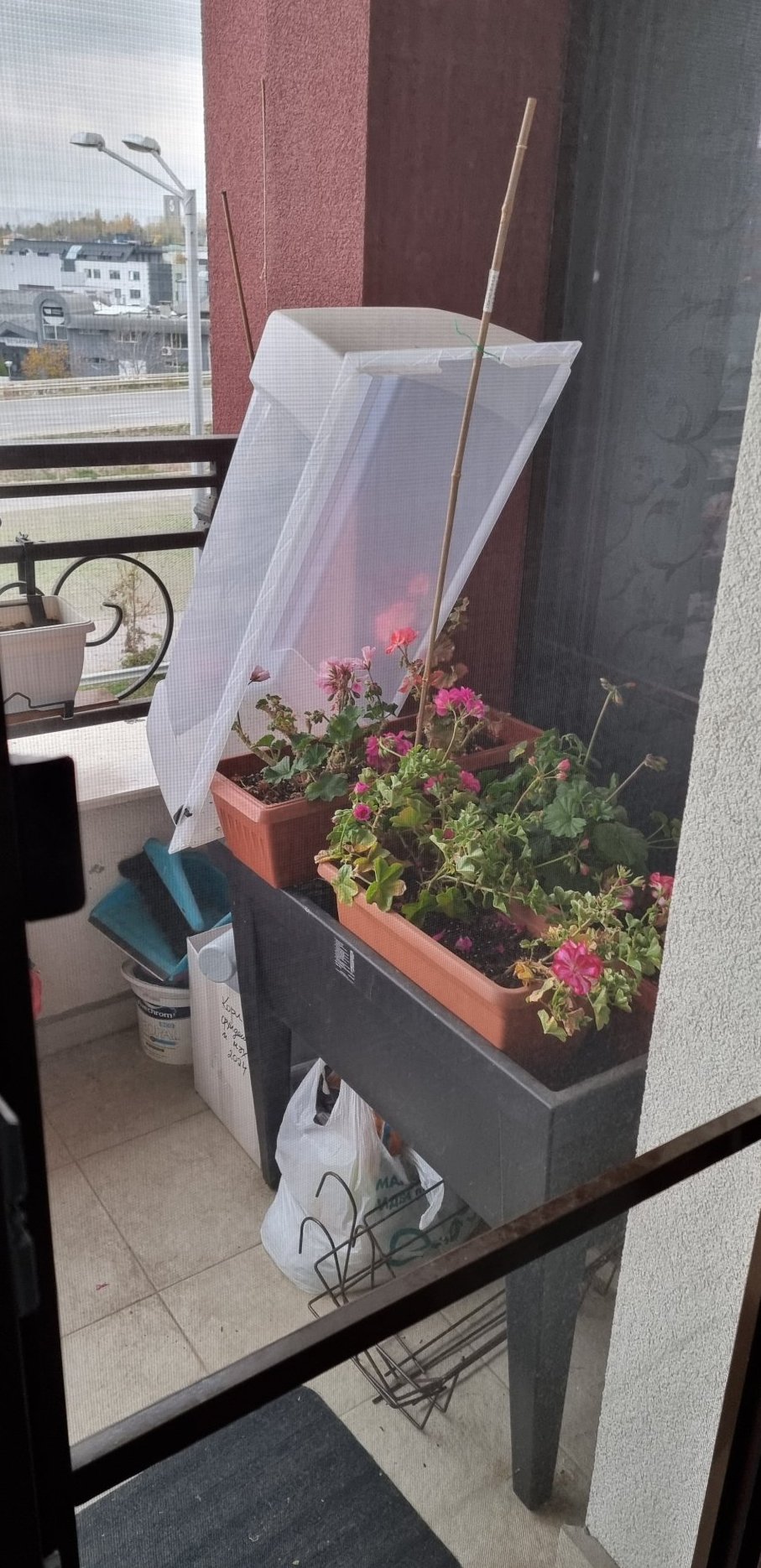имам едно покривало с което завивах цветята (хортензии) миналата година. Може да ги покрия и с него. За жалост не мога да затворя капака защото две сандъчета едва се поместват
