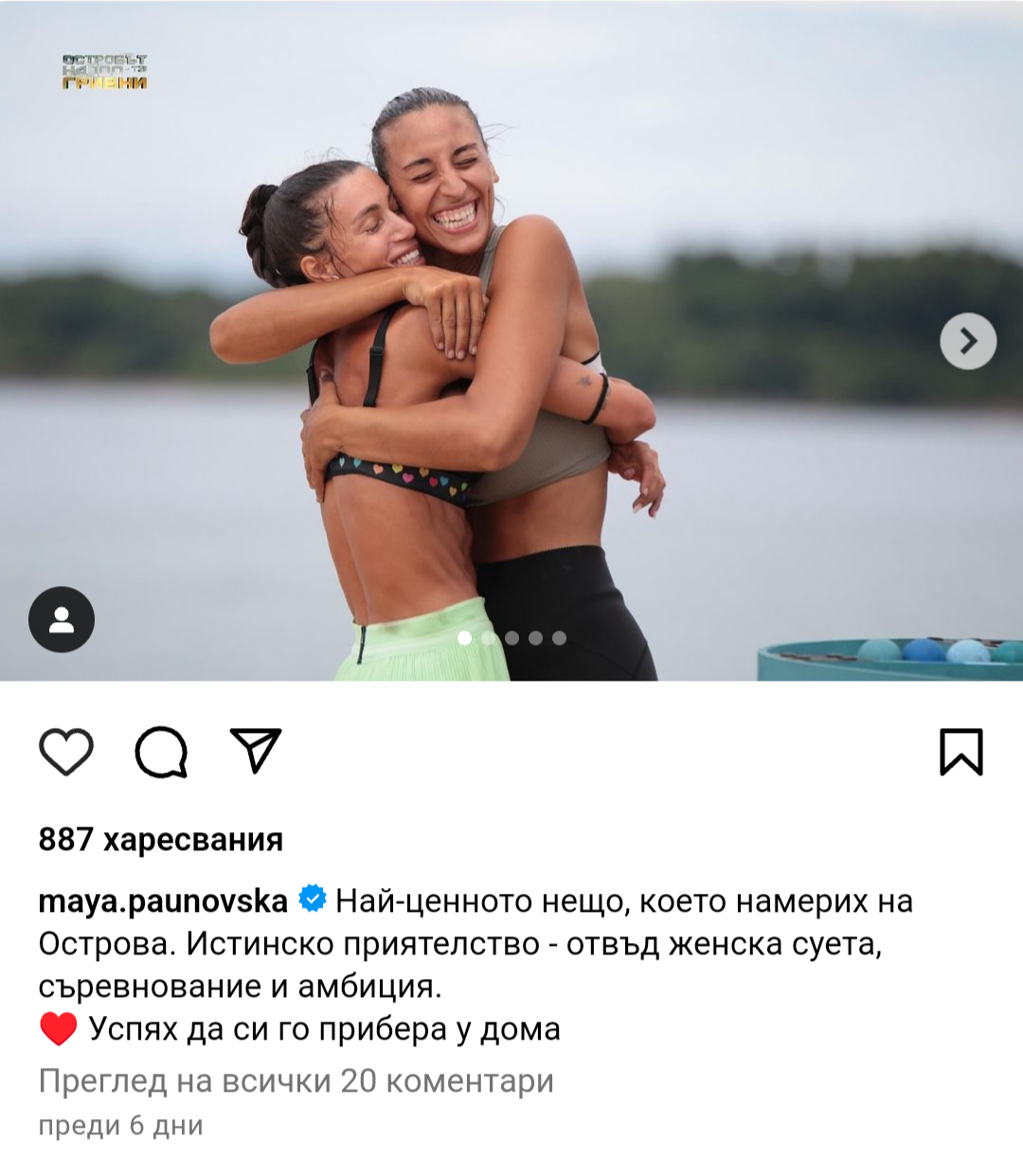 Майчето, да си се присъединя към клуба на призналите се, за момента аз също я харесвам ( когато не ме дразни в 20% от времето) . Не ми е фаворит за наградата, но за мен Мая е най-устойчивия човек на този остров и най-адаптивният. Като тревата, която расте въпреки цимента.