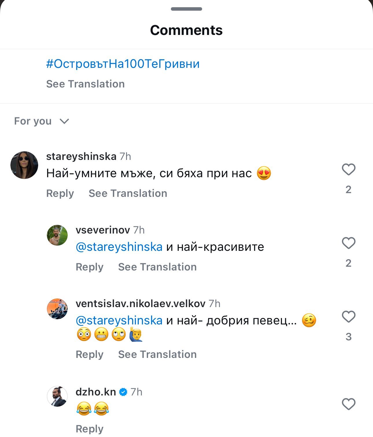 Много ме забавляват коментарите на Бистра, Влади, Венци и Миро под последната публикация на предаването в инстаграм.