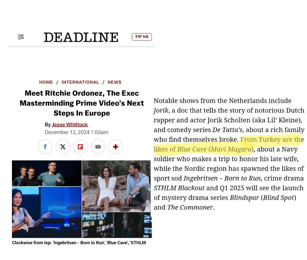 "Синята пещера" в статия на холивудския сайт Deadline за предавания на Prime Video, които трябва да се гледат. https://deadline.com/2024/12/prime-video-europe-ritchie-ordonez- … rview-1236196241/