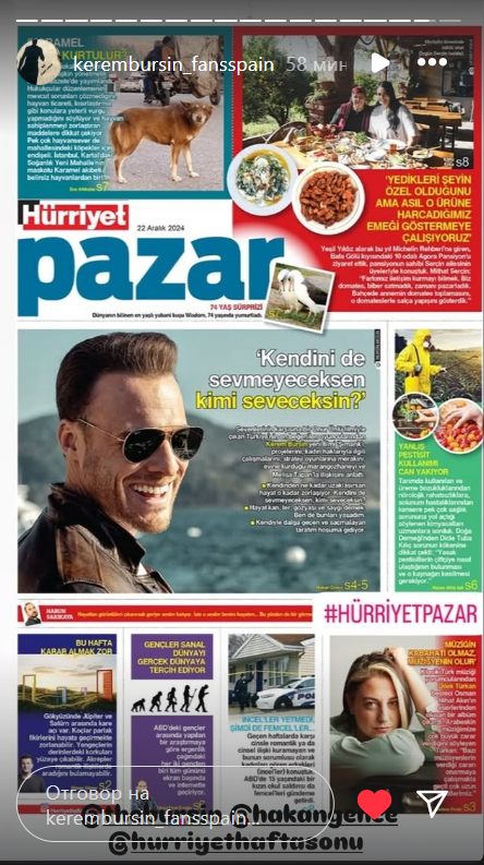 Той е един от най-популярните актьори в Турция. Красив, симпатичен и талантлив. Пробва различни жанрове в професията си, не се ограничава в стереотипите, „Важното за мен е актьорството, няма ли да се забавлявам и да се смея само защото системата не го иска? Например, не знам каква е концепцията за jön. „Когато мисля за Йънг, мисля само за неща, които не искам да бъда“, казва той. Не само това, той говори открито за правата на жените, защитава феминистките политики и размишлява върху проблемите на света: „Колкото повече се задълбочавате в този свят и го разбирате, колкото повече разширявате капацитета си по тази тема, вие неизбежно ще се промените.“ Срещаме се с Керем Бюрсин за филма „Şımarık“, който излиза тази седмица. Разговаряме за това защо е направил дърводелска работилница в къщата си, какъв любовник е, неговите неизвестни и живота му.Срещаме Керем Бюрсин в имението Six Senses Kocataş в един слънчев зимен ден. Хващам го с игрова конзола в ръка. Напоследък той играе игри в свободните си моменти, за да се разсейва. Въпреки че не си го признава, той наистина е много красив. Освен това е много симпатичен и хумористичен... „Харесвам онази страна от себе си, която се подиграва със себе си и е глупава“, казва той. Отиваме на плаж за фотосесия. Хората, които отиват на сутрешно бягане, са изненадани да го видят, лицата им се усмихват, всички го поздравяват и му пожелават успех. Снима се и си чати с всеки желаещ. След това преминаваме към нашия разговор и той започва да разказва...