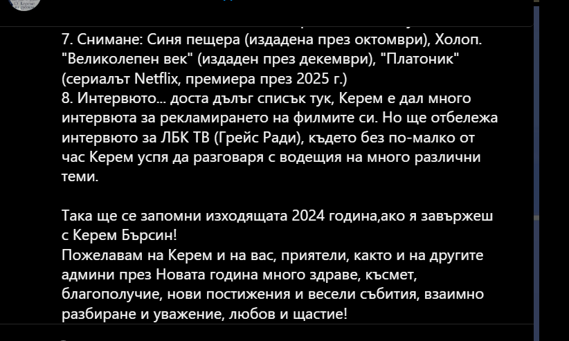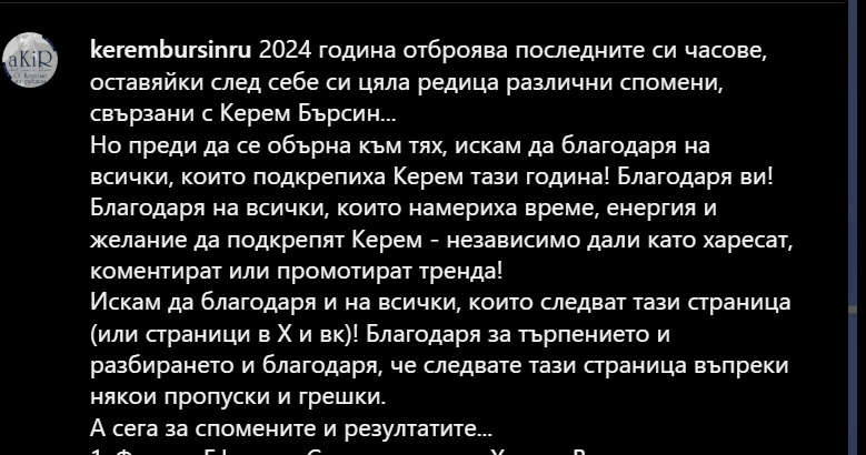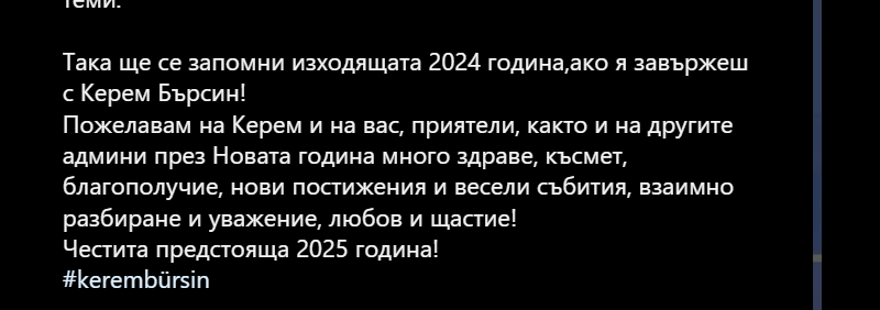 Ето какво е било новогодишното пожелание към Керем от руска фенгрупа.