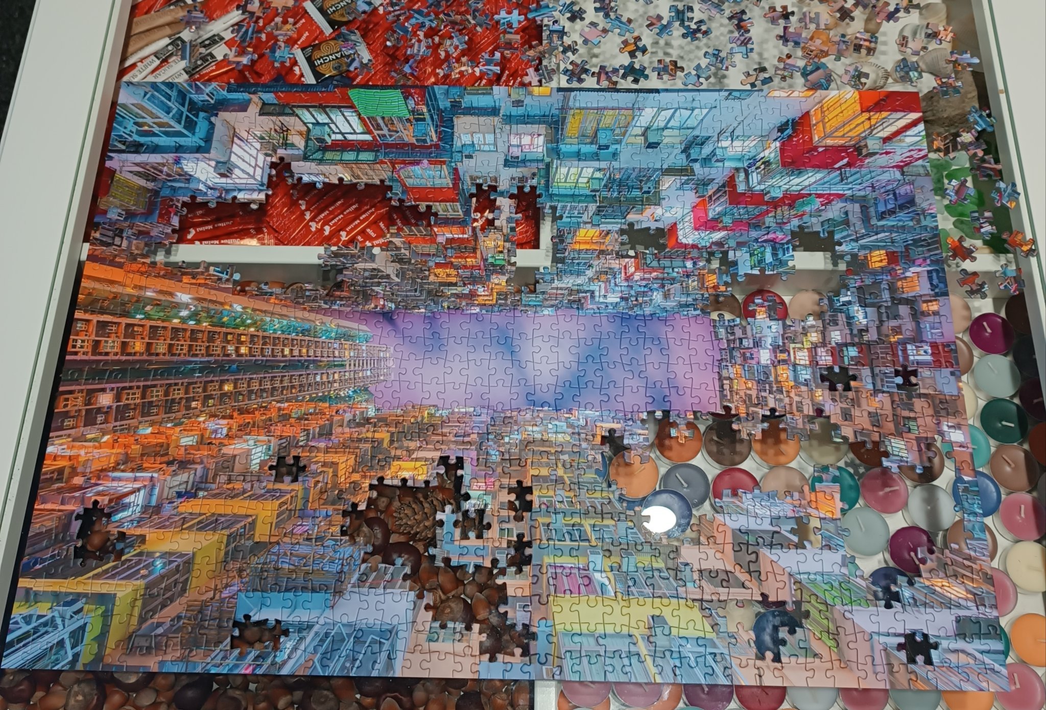 Ще се изтърколи годината докато се включа с нареден пъзел. Този на снимката го мъча от 2 дни, но тази вечер съм твърдо решена да го завърша. Полудях с тези блокове и балкони, но му се вижда края. 😄