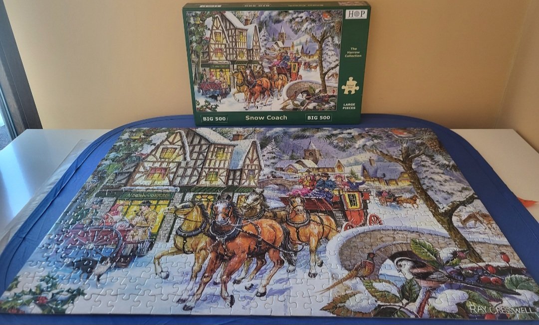 Една зимна картичка,  за  януари,2025г.                                                      HOP 🧩The House of Puzzles.Произвеждат се в Дъблин.Този  е третият, който редя на тази марка.Много качествени, с нестандартни части,красиви цветове и прекрасна сглобка!