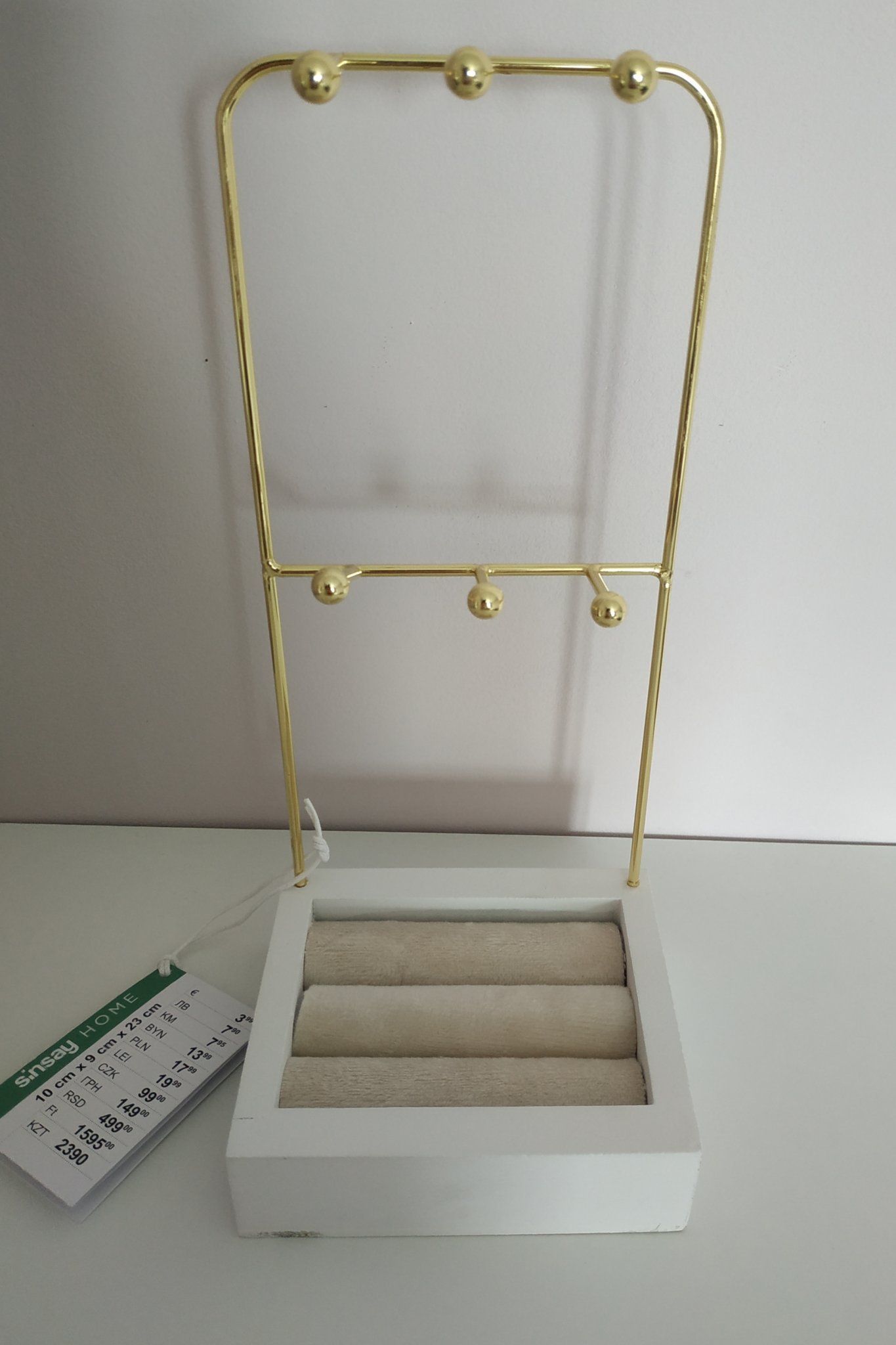 Тази стойка за бижута пристигна крива, с дефект на плата и петно отпред...