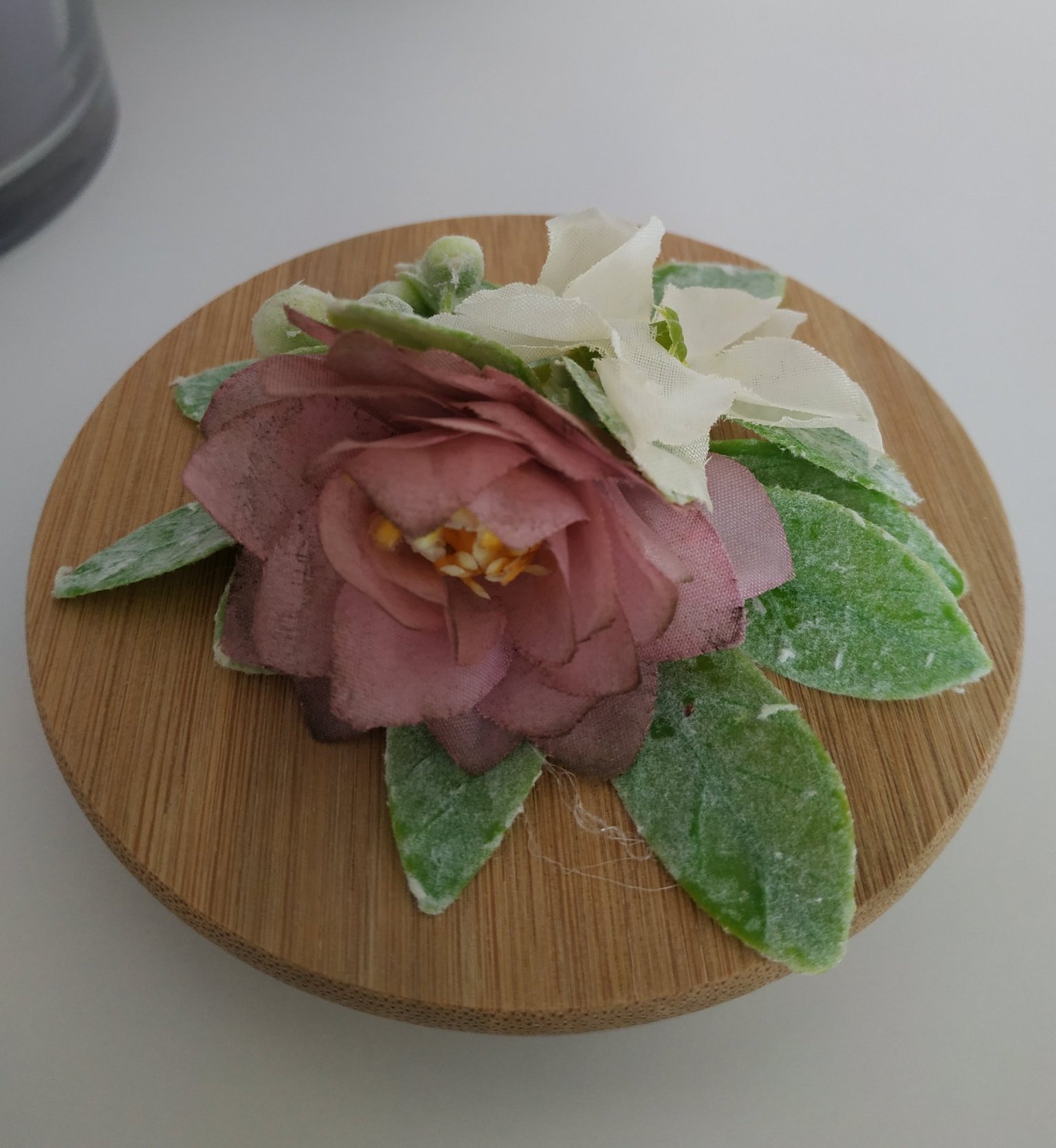 Не мога да разбера розовото цветче замърсено ли е или това е търсен ефект, леко са смачкани също така, иначе аромата е приятен.