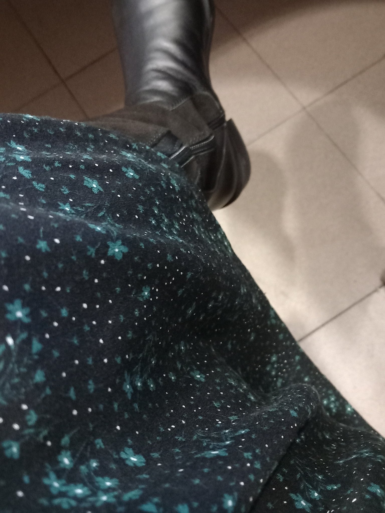 Любимата рокля с новите маратонко-обувки на Бианки. Пуловер върху роклята, кожено яке и шал.