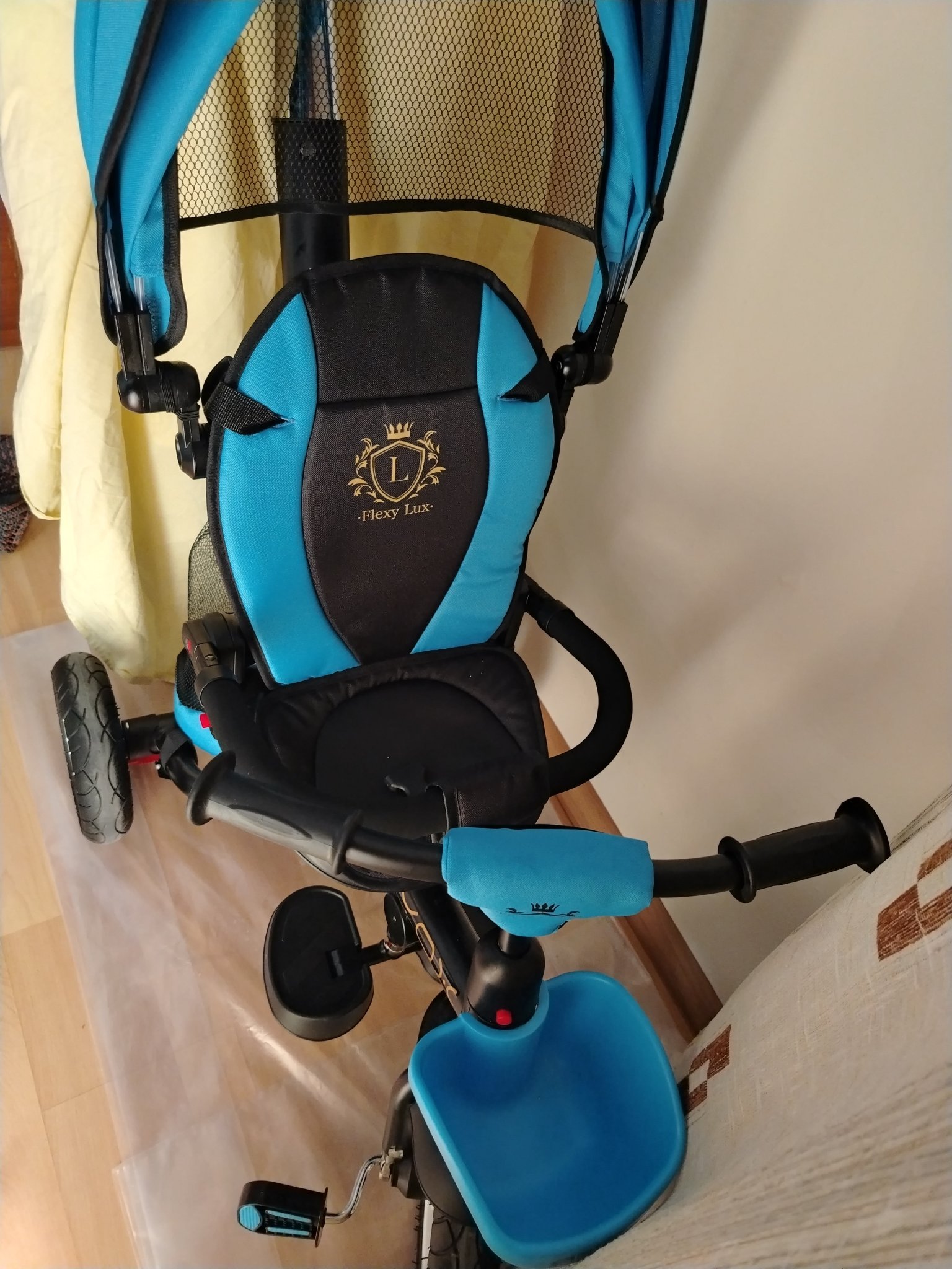 Много ми харесва, би ли споделила какъв модел е?Аз също търся тротинетка,  защото принцесата не дава да я сложа в количката.Пищи и се опитва да маха коланите ..