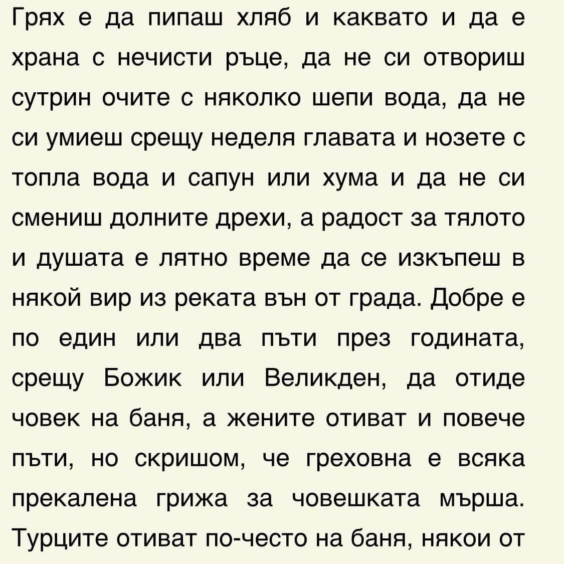 Само до преди 40 години далеч е нямало баня във всяка къща, ходело се е на градска баня веднъж седмично. И това е в близкото минало. В далечното е обективна действителност в цяла Европа, ако към днешна дата не звучи добре, тогава така са живеели.