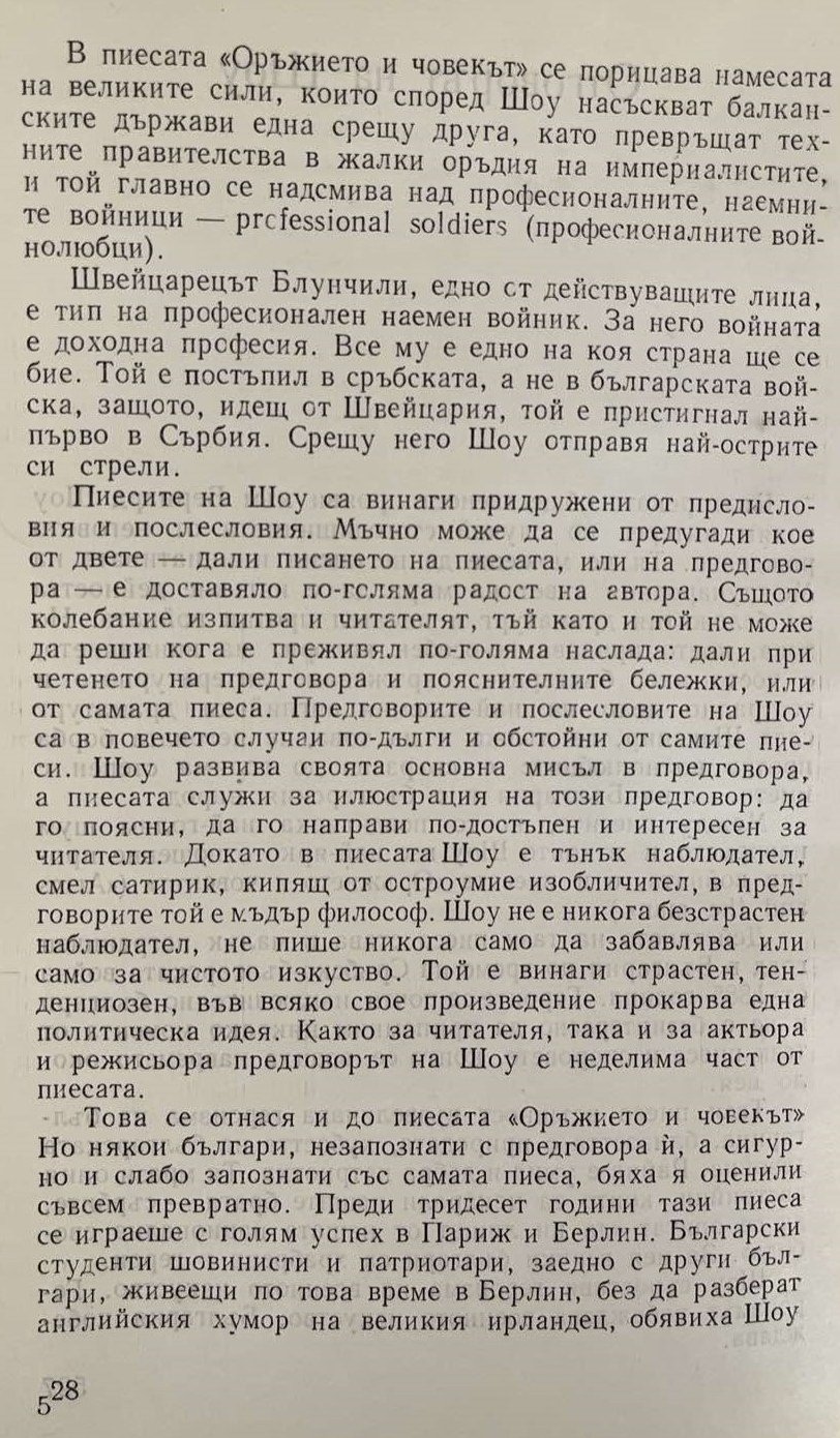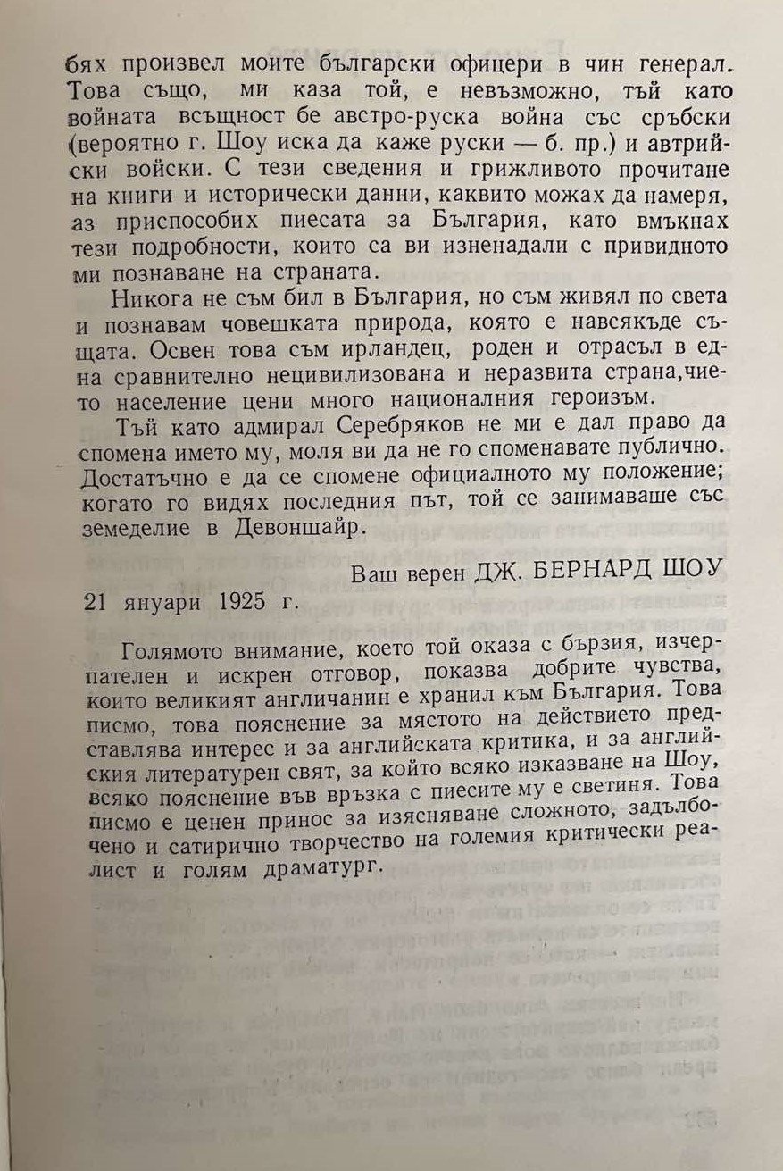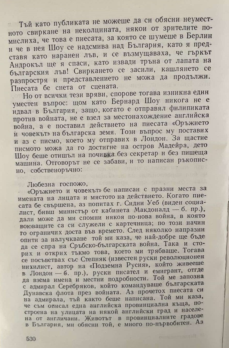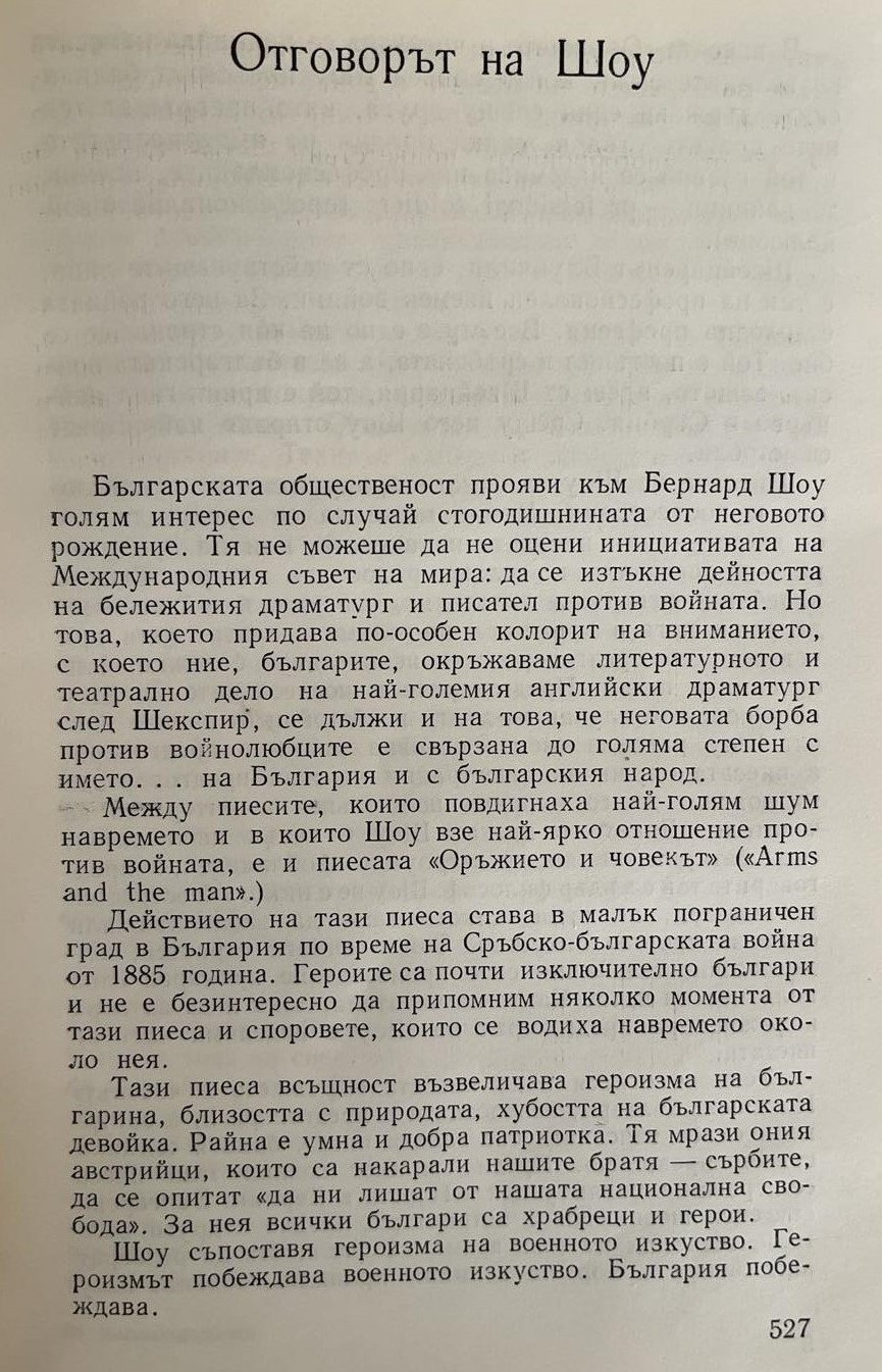 В пиесата на Шоу няма омаловажаване на никаква трагедия на българите.
