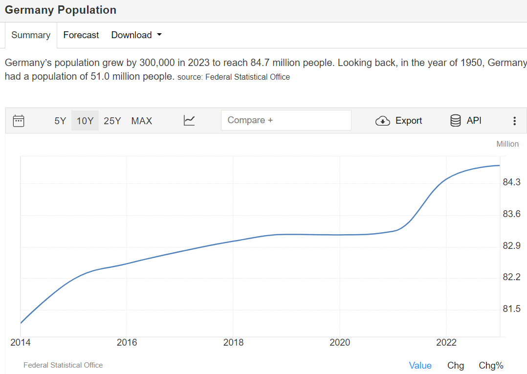 А в Германия недостигат жилища, защото населението расте. И там не раждат много, но поне им идват имигранти - къде за добро, къде за лошо, но дори и бедните непродуктивни имигранти имат нужда от жилища и затова има причина жилищата да си покачват цената (за закупуване или наемна):