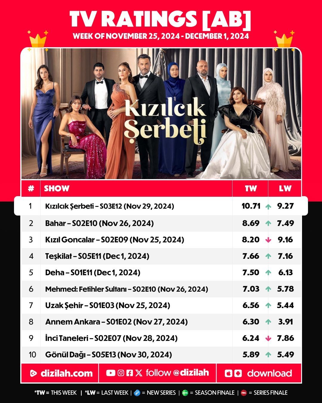 Качвам и седмичните рейтинги за гледаемост на продукциите. Тази седмица сме в 10ката и в трите категории и то на доста добри позиции🔝🔝🔝