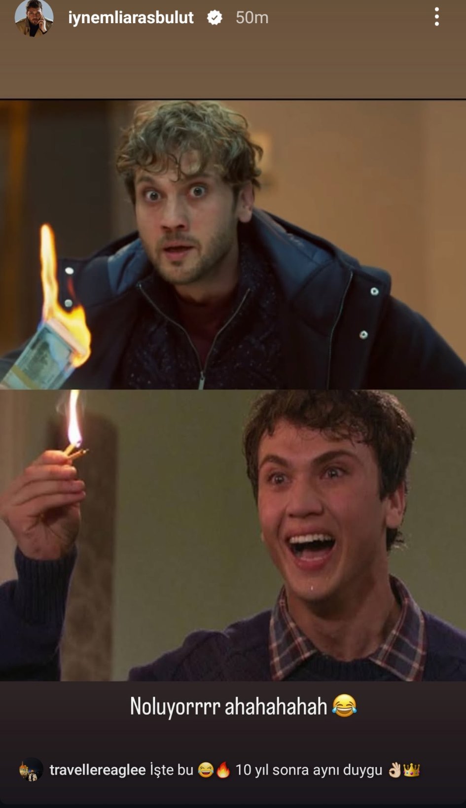 Пипи, аз още не съм го гледала със субтитри, но снощи и аз се чудех как ги намери. Мислех, че нещо съм пропуснала. Чудех се и защо му е да гори парите на Карга. Не може да не е наясно какви ще са последствията. Но дали пък за това не заключи цялото семейство? Карга и Хаким все пак са братя и няма как да го изостави. Според мен парите на истински, но каква е целта на Девран, не разбирам.
