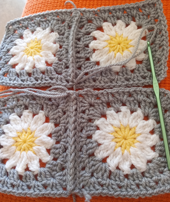 Относно свързването на квадратите - да се внимава да не се плете много стегнато. Може да се използва и по-голям номер кука. Ако е много стегнато ще се получи ефект "възглавнички", като катипонираните якета.