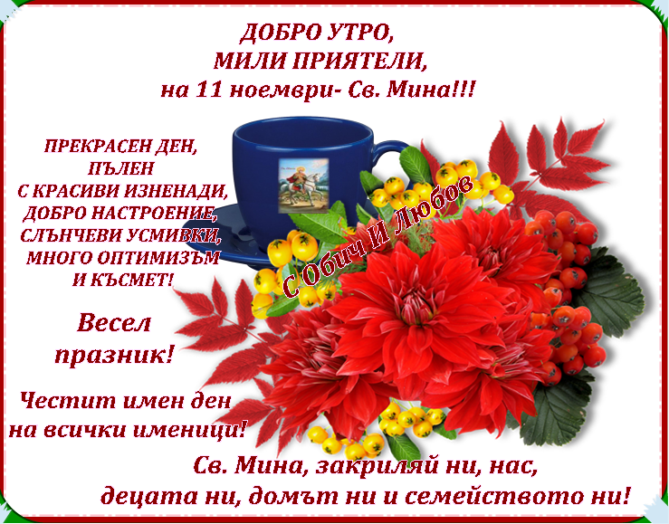 Защото на 11 ноември Православната църква почита Свети великомъченик Мина Воин, покровител на семейството, сираците и бездомните, пазител на пътуващите на дълъг път, воините и лечителите.