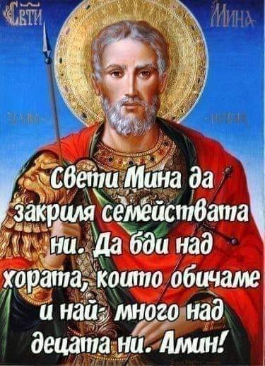 Честит ни християнски празник Св. Мина! Нека всички семейства бъдат закриляни от болести и злини!