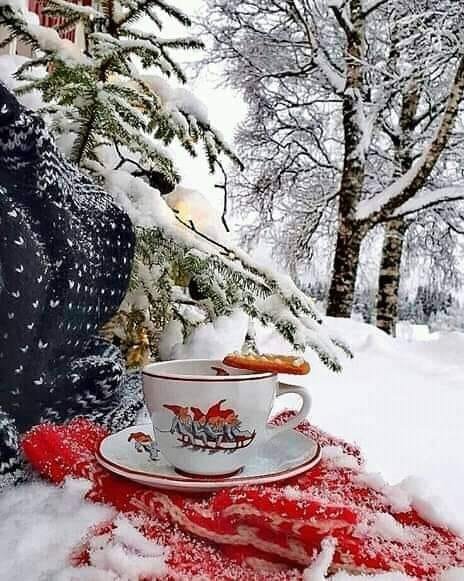 Снежна сутрин, горещо кафе и топли мисли. Честит първи сняг!
