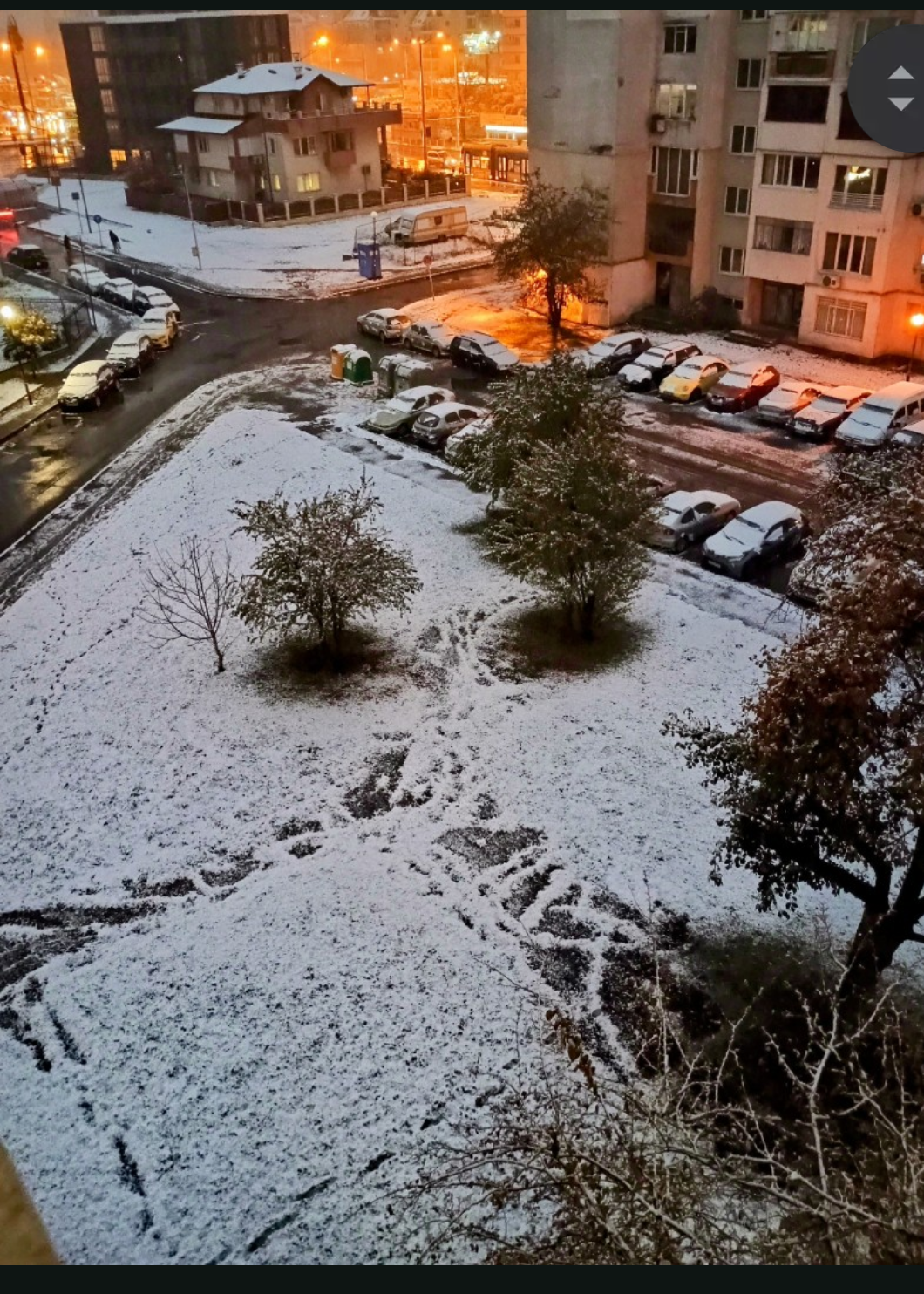 При мен вали сняг.Доста силно,но се топи още преди да е паднал на повръхността.