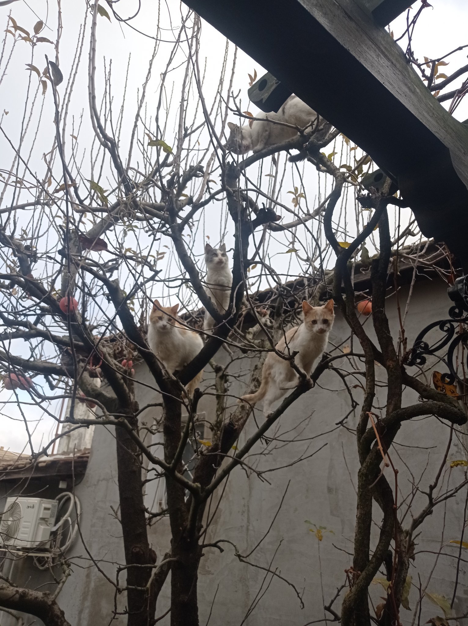 А дървото с котките е уникално! Какво са накацали там? Сигурно са излапали врабчетата и сега храносмилат