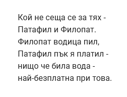 Както и да е. Киро и Дзами в поредна потайна, но разрешена от продукцията, среща из горите - ми заприличаха на Патафил и Филопат от ч/б анимацията от детството ми. Връстниците ще се сетят - няма да издавам символ на какво бяха...