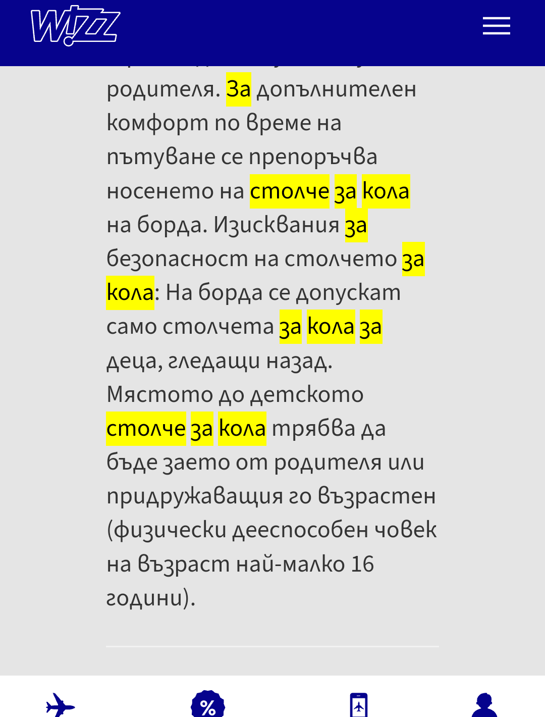 Здравейте, имам въпрос - искаме да пътуваме с лятна количка (Bugaboo Butterfly, води се от одобрените за самолети в кабината, но по размери нито една количка - дори и Babyzen yoyo не съвпада с изискванията за багаж) и столче за кола (ще наемаме автомобил в дестинацията) - длаи и двете може да ги вземем безплатно? Четох условията на сайта, но не съм сигурна дали и двете ще се признаят за багаж на детето - малко над 2 години ил ще трябва да доплащаме. Може ли някой пътувал в сходна ситуация да каже какво се е случило. Благодаря!