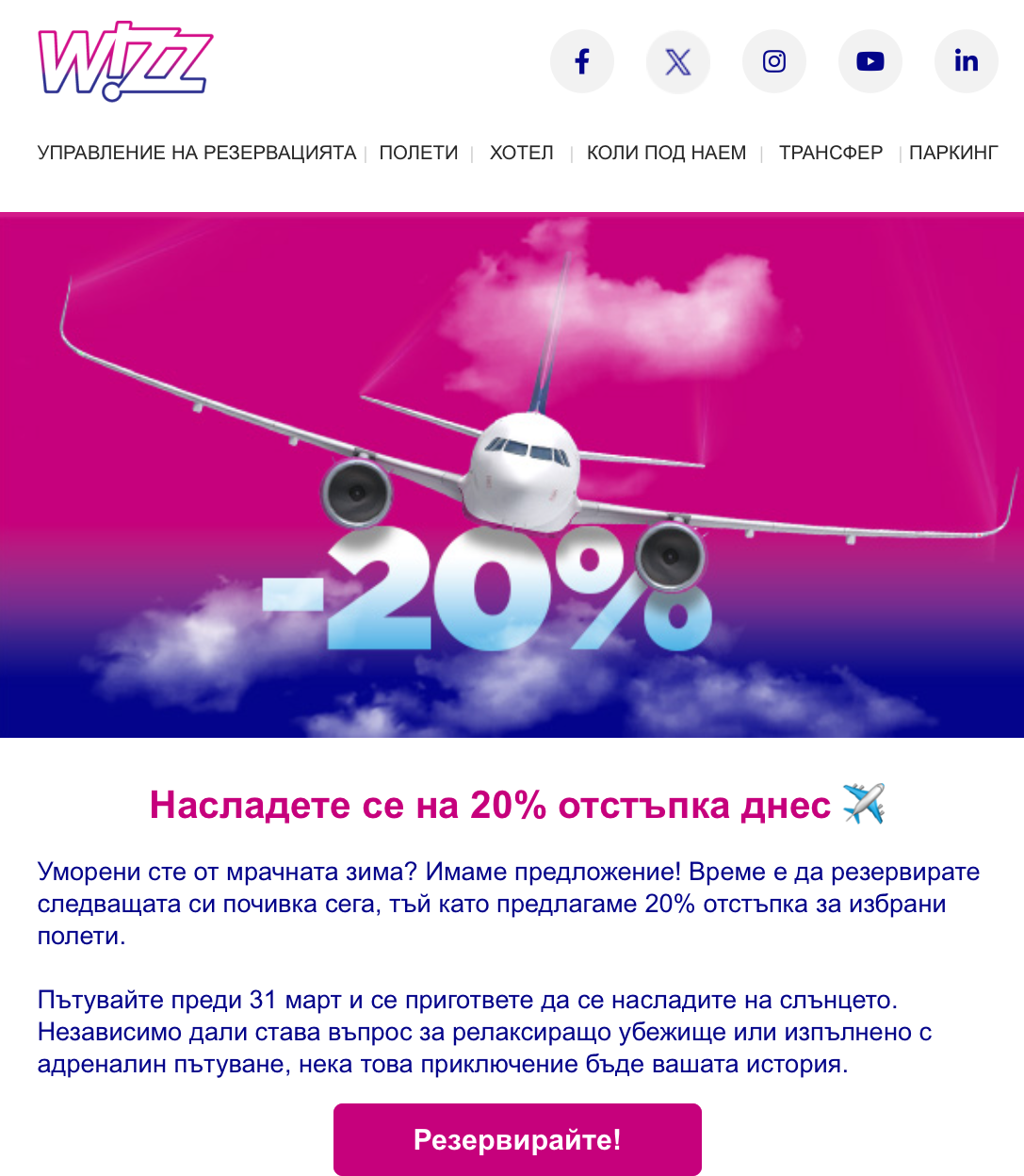 Важи днес и утре, за полети до 31 март 2025 г.