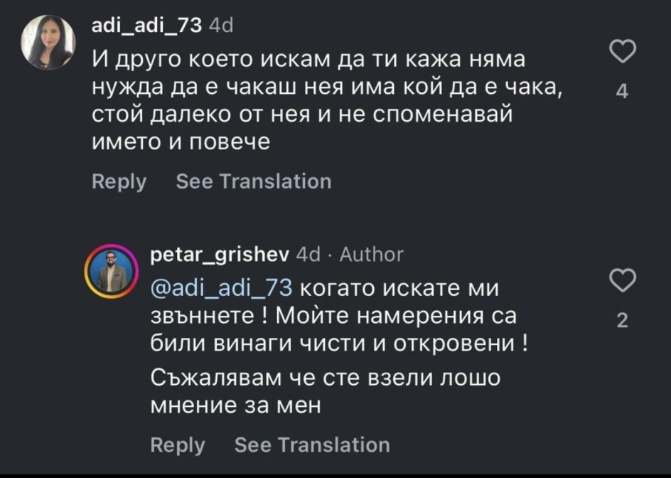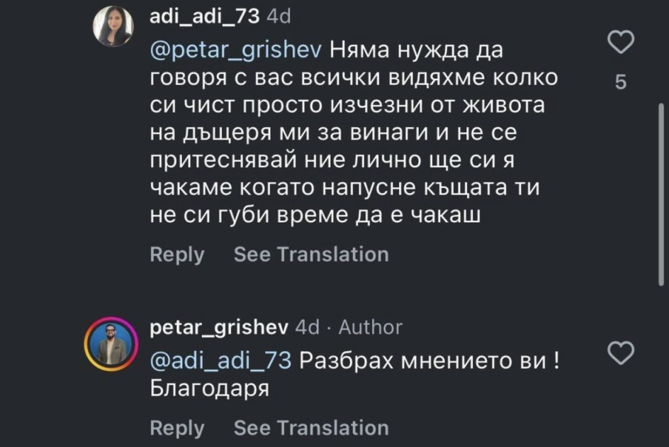 Видях в Тредс пост със скриншоти, от които изглежда, че майката на Атиджа никак не харесва Петър