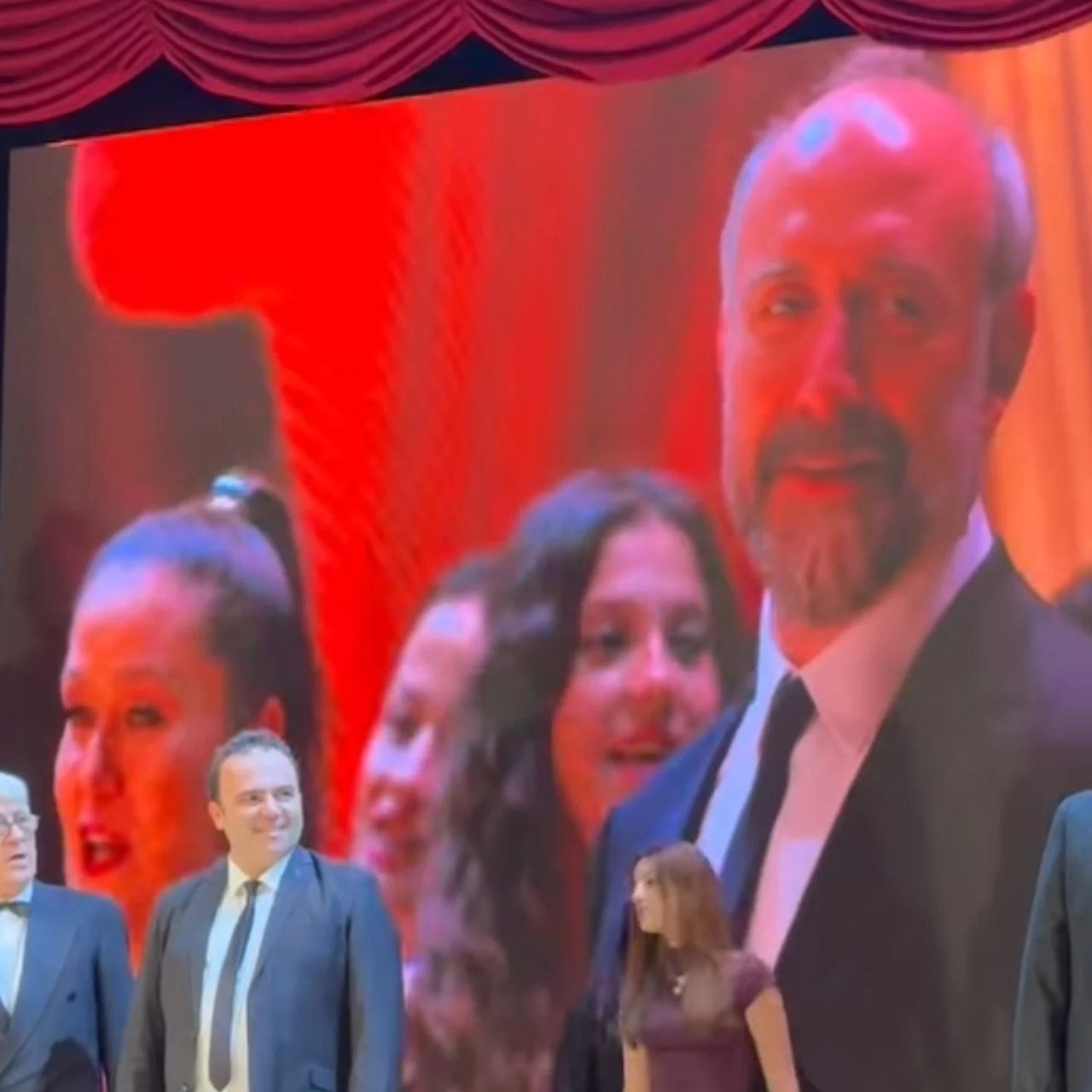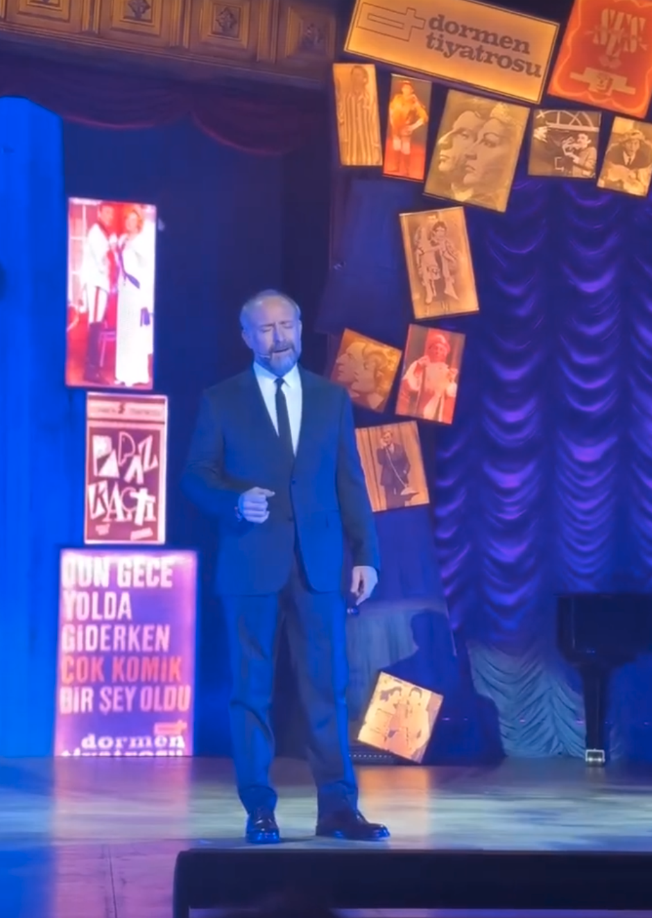 Халит на сцената на тържеството, с което беше отбелязана 70 годишната кариера на доайена на турския театър Халдун Дормен.