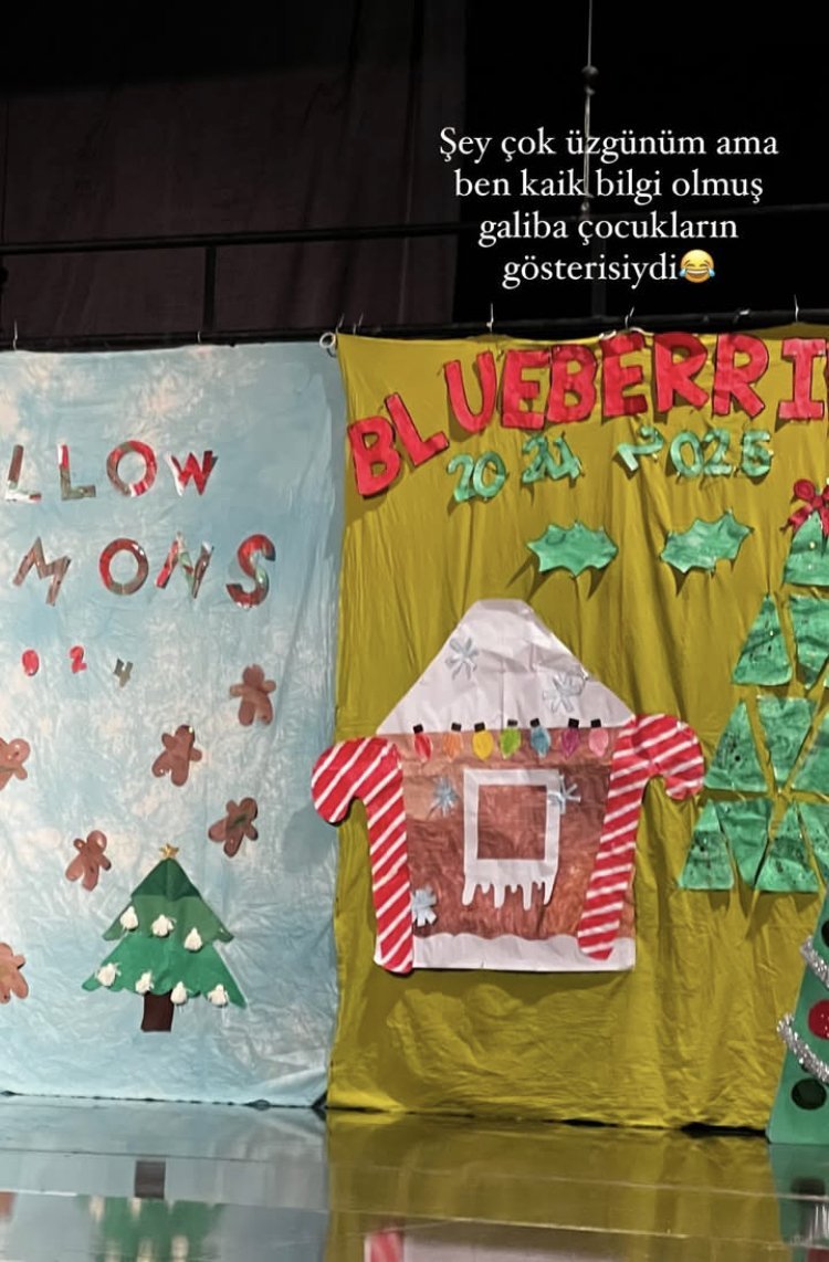 Ааа Хан и Лейла са имали новогодишно тържество в детската градина днес. Берг и Халит са ходили да ги гледат. Това е имала предвид Берг. Явно и детето на режисьора Улуч Байрактар учи там.