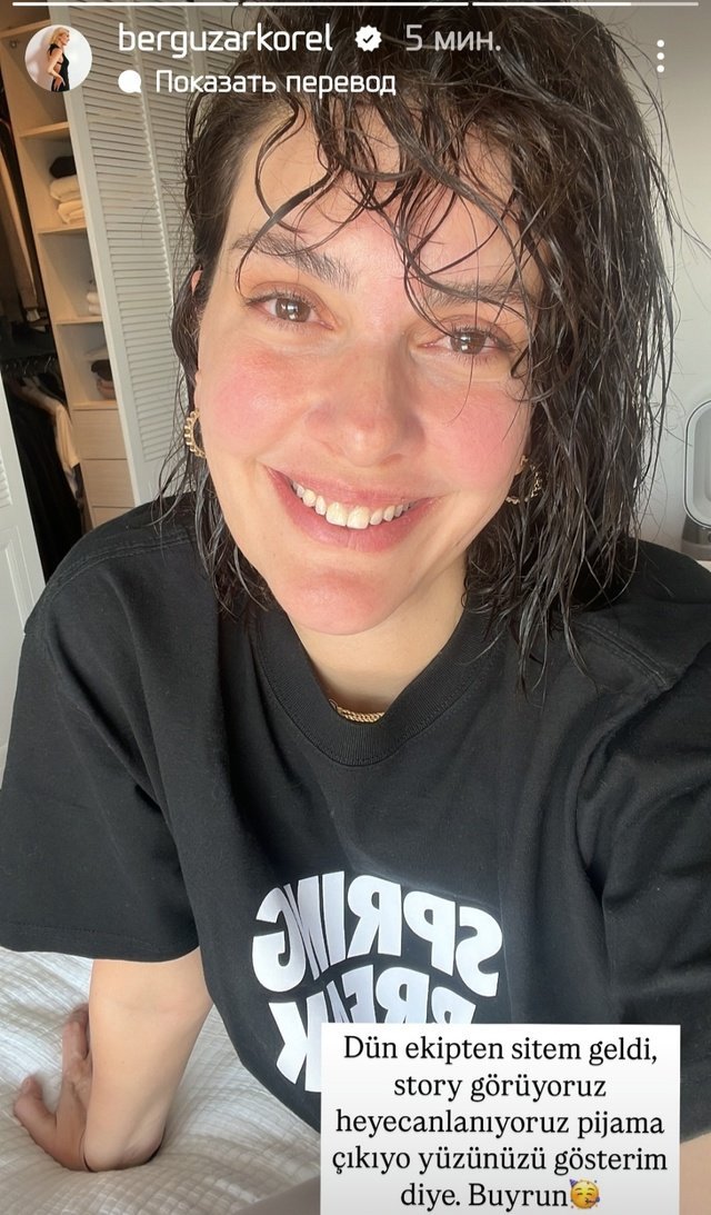 По повод предстоящия в неделя в Турция Ден на майката Бергюзар сподели с усмивка: "Надявам се да ми вземат цветя и да ме изненадат, влизайки с тях в стаята ми рано сутринта".
