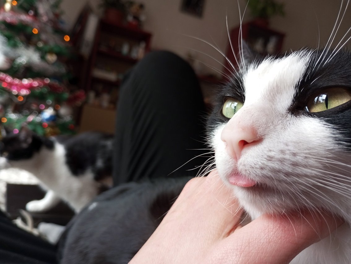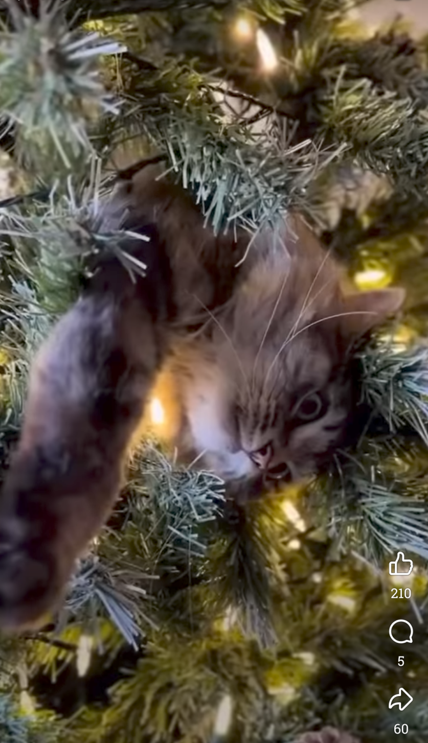 Аз не мога да повярвам, че 5-и ден елхата ни е ок? Защо? Тези котета се бият постоянно, скачат, драскат наоколо, Хели се закача със всеки възможен предмет който вижда, връзка , очила и прочие. НО не бара елхата и играчките... Защо??? :O