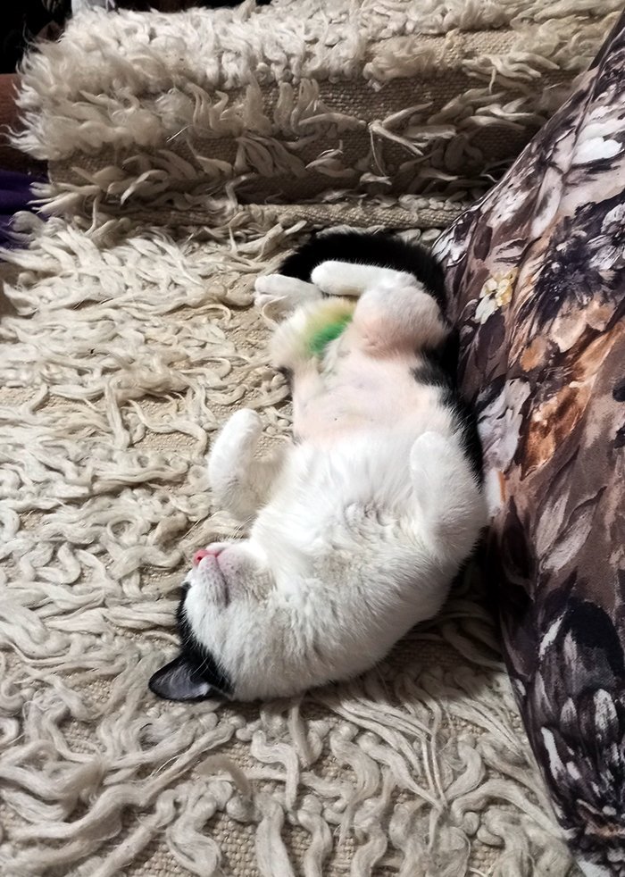 А Хели тия дни, явно от жегите, спи доста по гръб. Sweat Smile