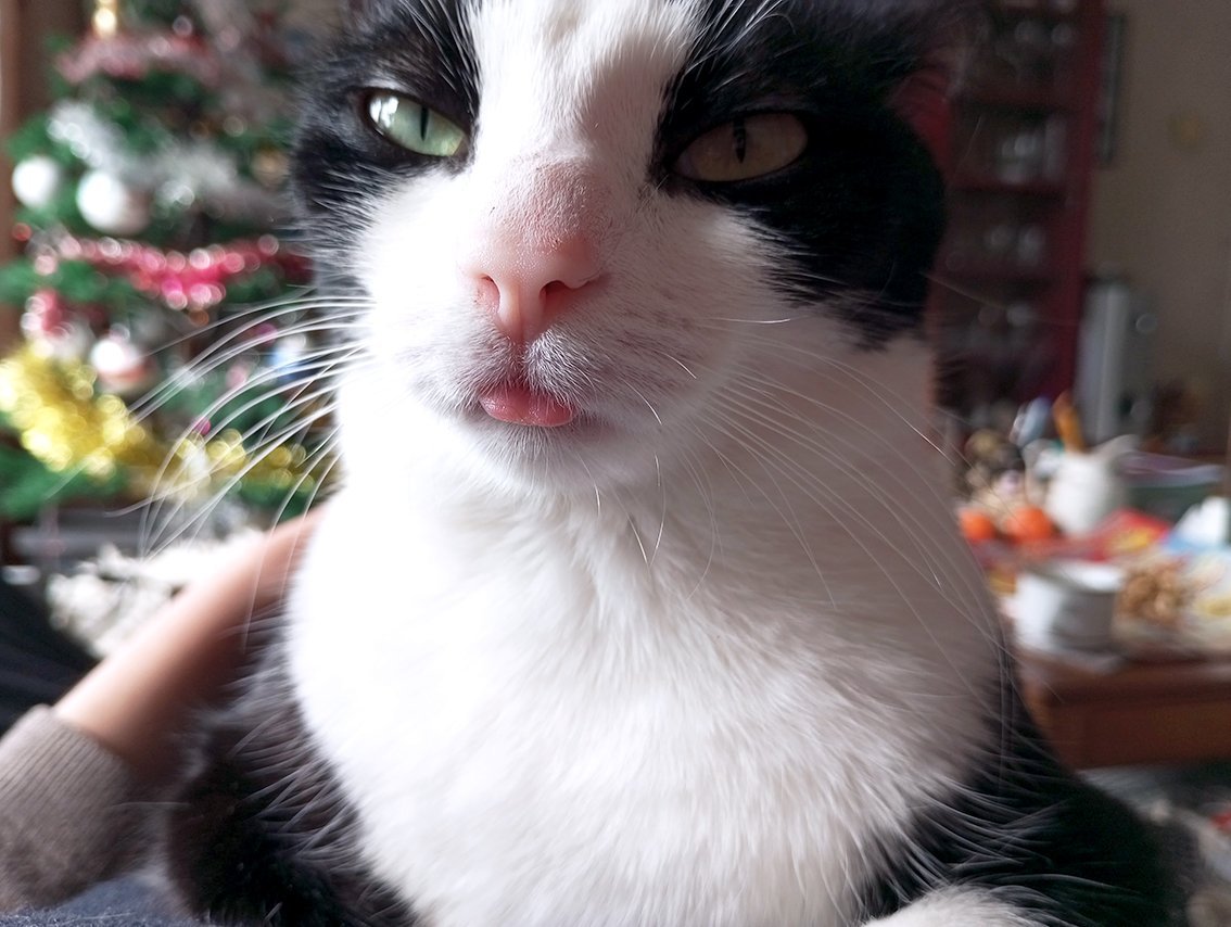 Иначе днес се погушкахме малко с Мими, пак беше забравила да прибере езичето (тук не я душя, а я галкам Grinning )