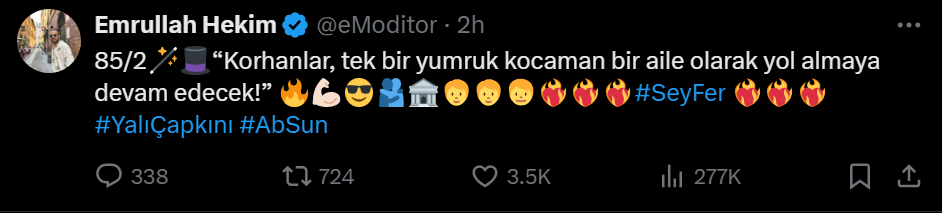 Аз не мисля, че еможито е за СейФер. Може да е за всеки другиго, може да е един вид за цялото сем. Корхан, може да е за Орхан🤣, за Есме 🤣, ако Орхан зареже Бетюл още този епизод и се събере с Гюлгюн, може да е АбСун също.