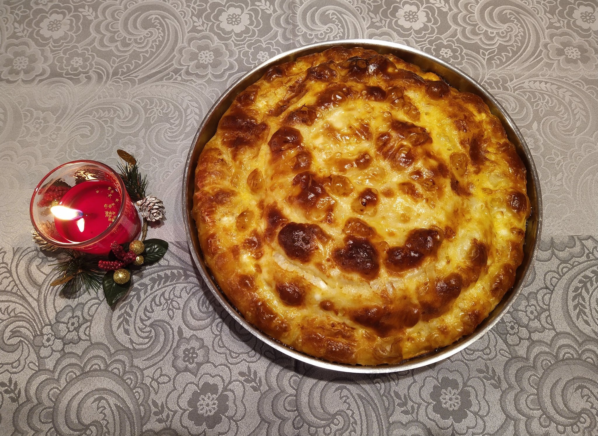 Замесва се с температура 26 градуса, маята се натрошава във водата и захарта. Замесва се с всички продукти, като се отделя 1 яйце, което се ползва половината за намазване и половината за пълнежа.