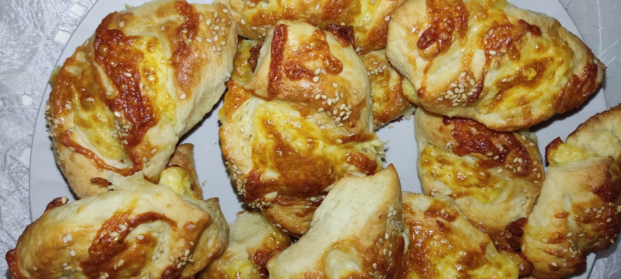 Втасват втори път, наредени в тава за 1 час на хладно (28-30градуса). Намазват се с яйце и се наръсват леко с настърган кашкавал.
