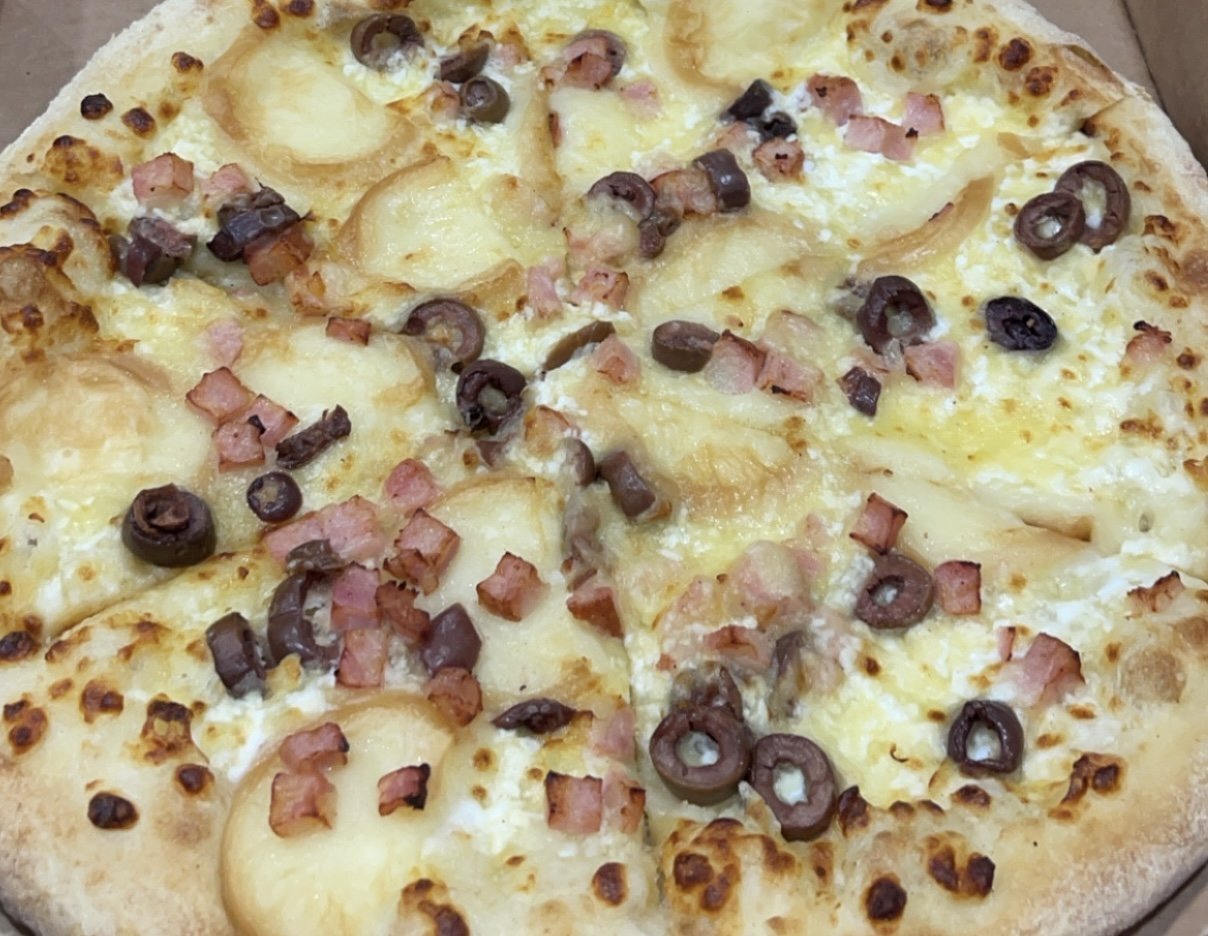 В намазана с олио тава се разстила тестото на блат, отгоре се намазва със сметана, кръгчета крави кашкавал.