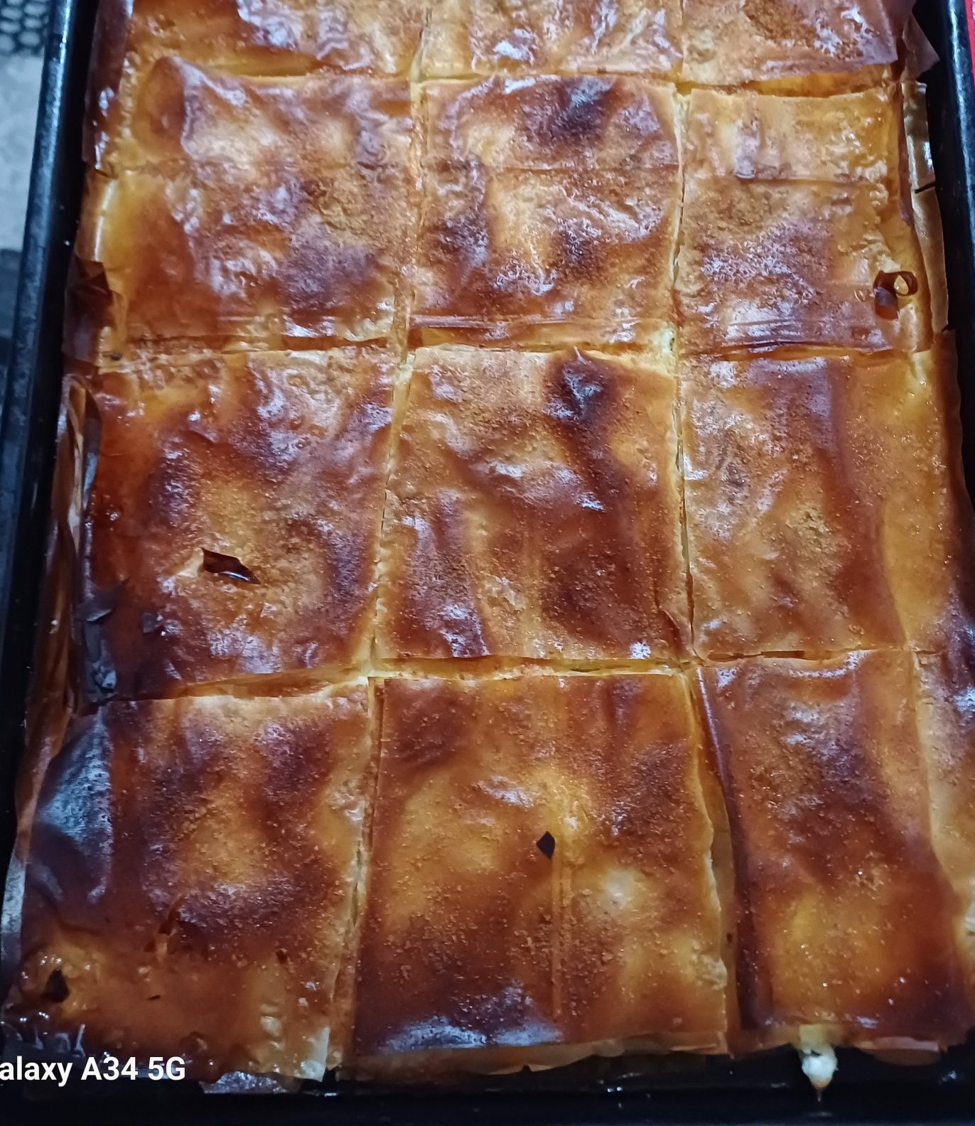 4 яйца; 300 гр сирене Мое твое наше, пакет кори, кисело мляко -300 гр. Бакпулвер, масло за намазване.