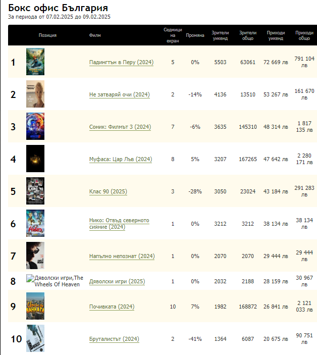 Терапията (не попада в топ 10 класацията), който започва с 20 114 лв. боксофис.