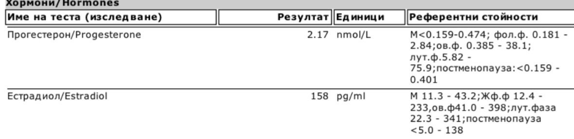 А какво мислите за тези стойности ? 5 дни преди ЗЕТ . До момента съм на декапептил и естрофем . Не съм започнала ,още утрогестана,а прогестерона е доста висок ,което означава ,че въпреки лекарствата е настъпила вече овулация и не трябва да има трансфер . Нали така ? Естрадиола пък е нисък