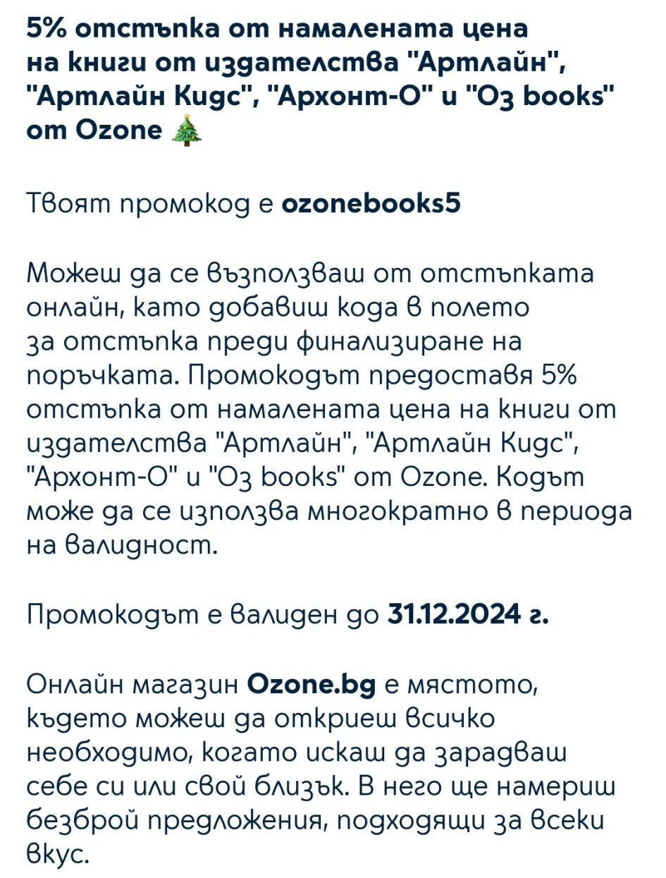 ПП 2:  Ozone, кога евентуално биха пуснали масова промоция (поне -20%), понеже имам ваучер за там?