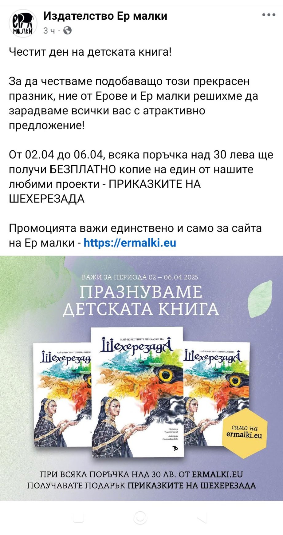 Издателство ер малки, при поръчка над 30 лева, подарък" Шехерезада ".